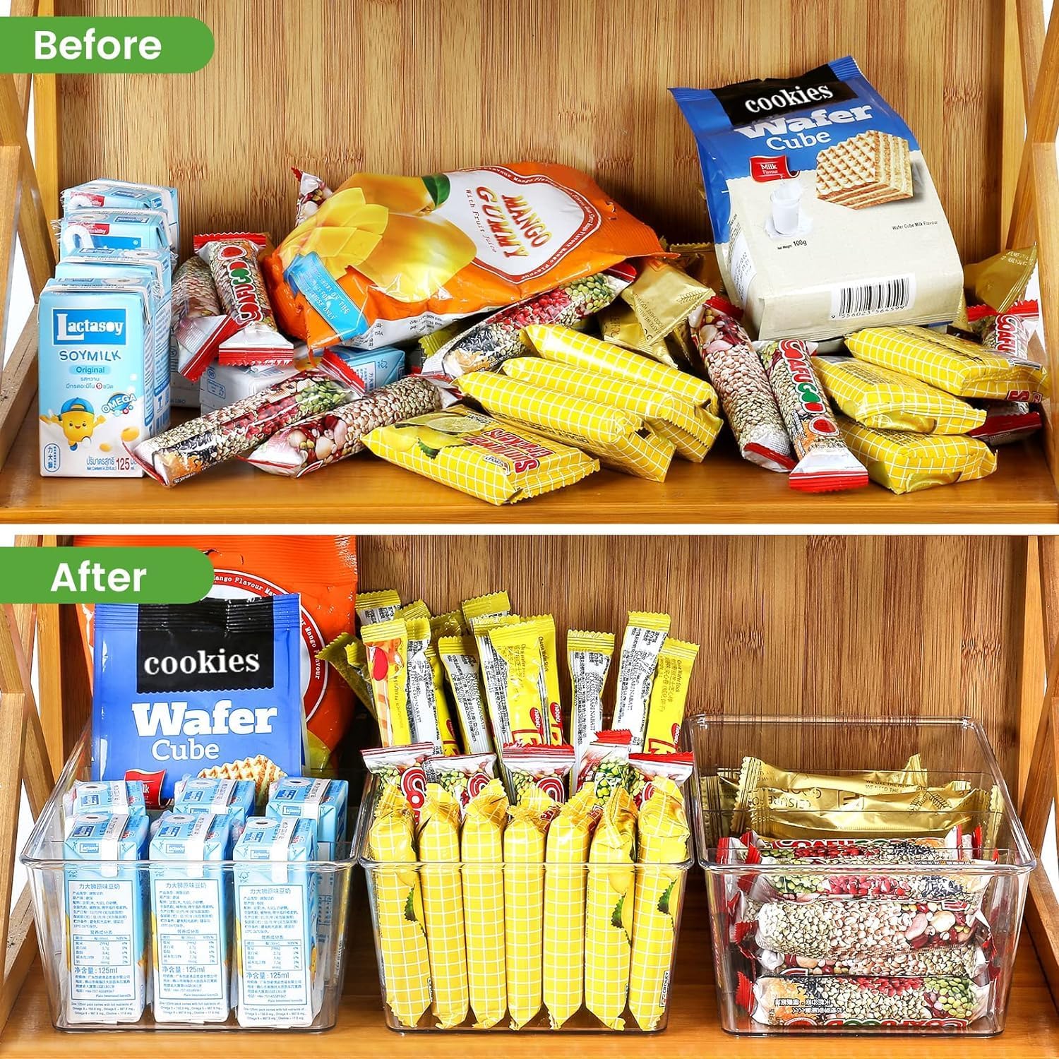 - Organization & Storage: Pantry organizer bins will be a good choice if you are looking for some organizer bins to store and organize snacks, spice packets, gravy packets, seasoning packets, tea packets, instant food packets, protein bars and more. Those organizer bins keep everything neat and organized