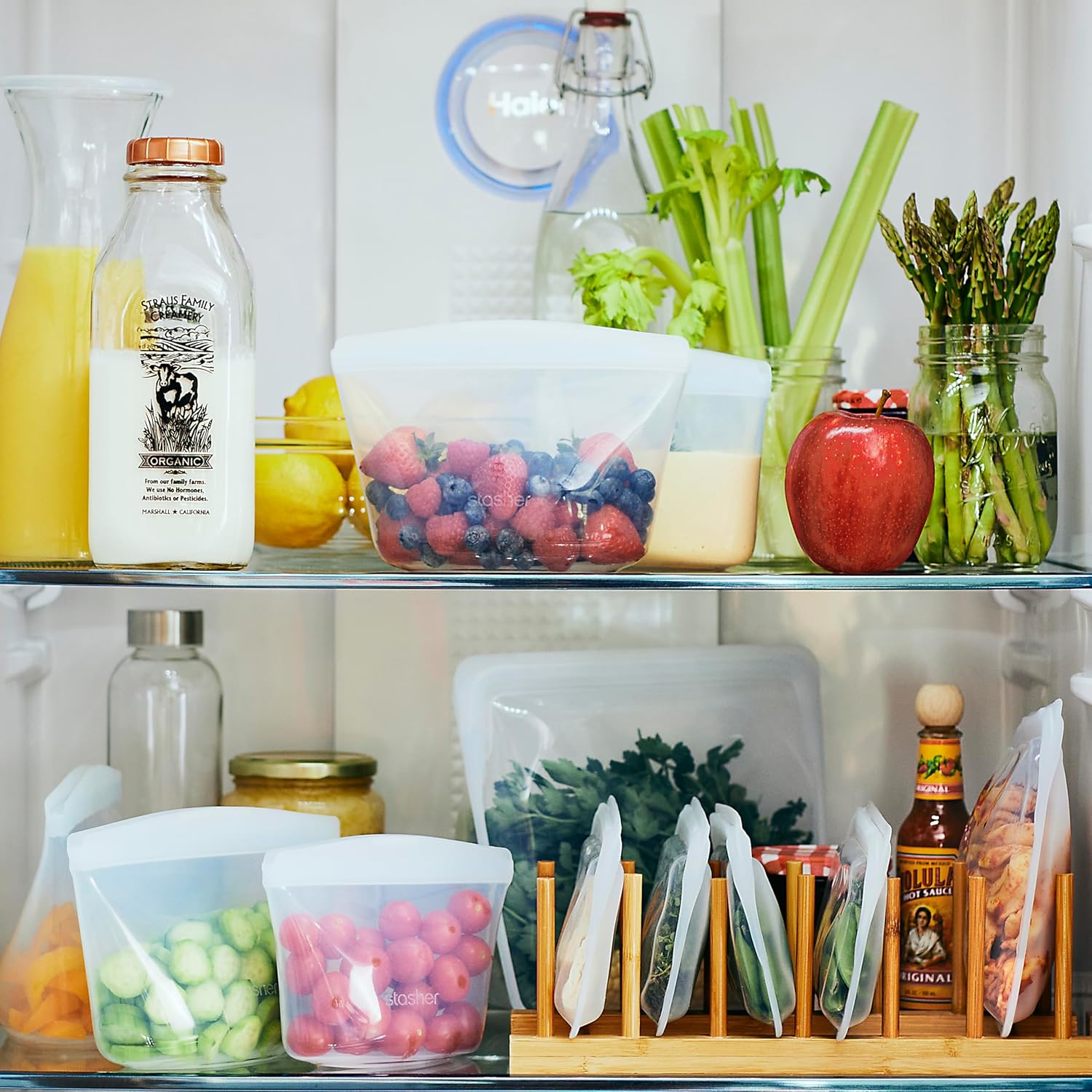 - REUSABLE, REWASHABLE CONTAINERS: Stasher silicone reusable storage bags make it easy to ditch single-use plastic and meet endless household needs. Safe for the dishwasher, microwave, oven (up to 425Β°F), and more.