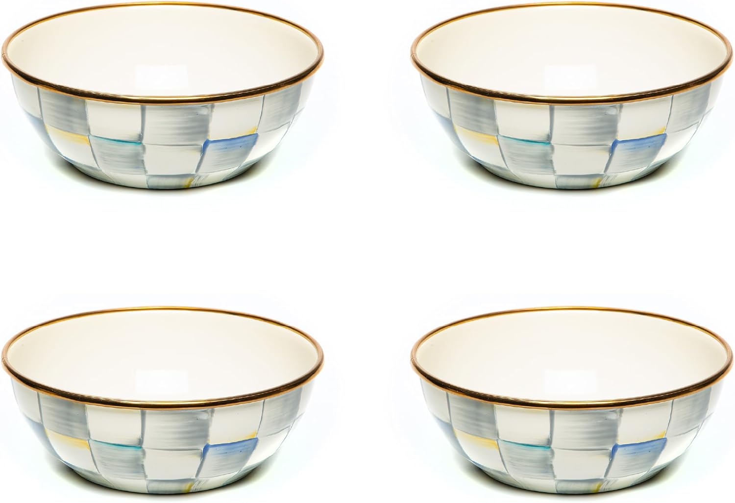 MACKENZIE-CHILDS Enamel Everyday Bowl, Serving Bowl for Entertaining, Extra-Small, Gray-and-White Sterling Check, Set of 4