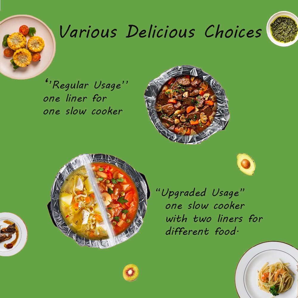 - Durable and Convenient : These bags make cleaning up the slow cooker a breeze! They can fit in several different sizes of slow cookers from the original size to the 10 quart oval type. You simply place one in the slow cooker and put your ingredients in turn it on and let it cook.Use our slow cooker liners to cook any food you like, include chicken, fish, soup, dessert and stew.
