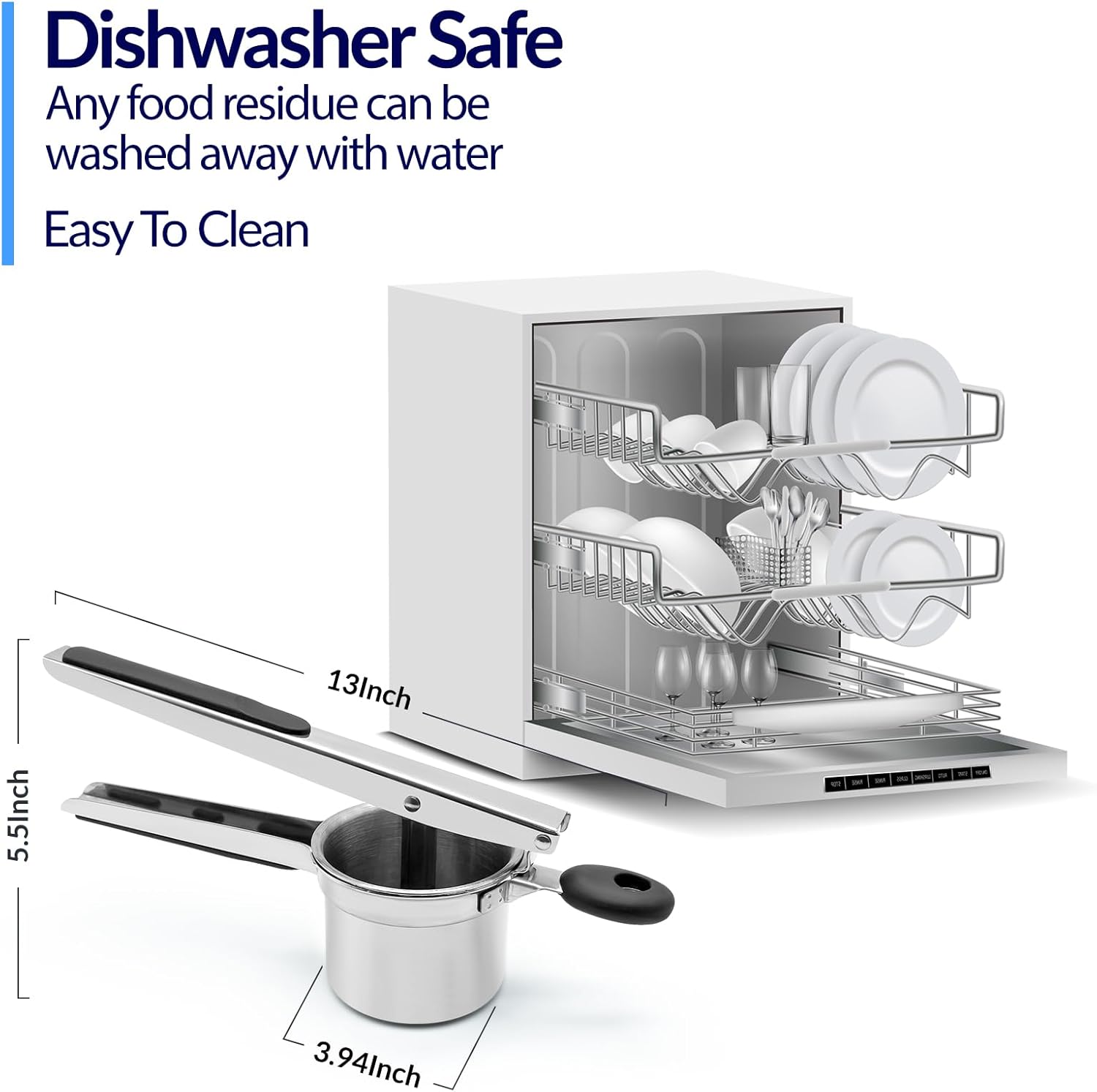 - 【High-quality Stainless Steel Potato Ricer】Heavy duty potato ricer stainless steel can resistant to stains, corrosion and deformation and long-lasting. Besides, the ricer for mashed potatoes is dishwasher safe, and easy to wash in warm water