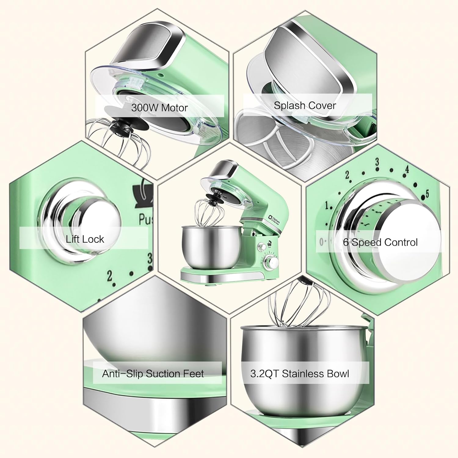 - 3.2Qt Capacity and Tilt Head Design - Our little kitchen mixer equipped with 3.2Qt stainless steel bowl,suitable for new baker,1-2 members family or couples,easy to operate and clean up.Tilt-head design mixer allows access to install or uninstall bowl and accessories easily.And transparent anti-splash lid could prevent the ingredient making a mess.
