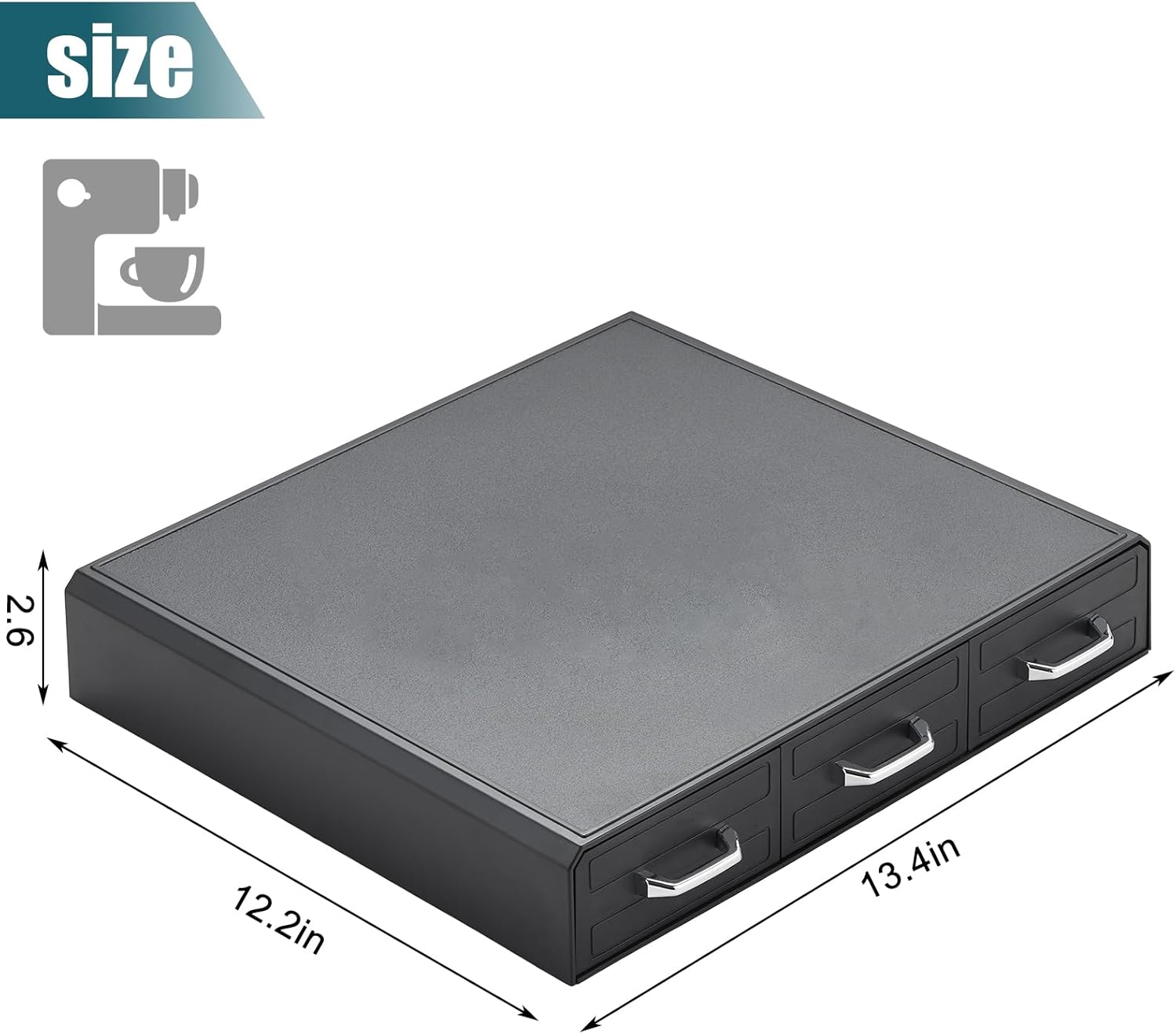 - Dimensions: Measuring 13.4 x 12.2 x 2.6 inches, it provides ample storage without being bulky. Efficiently saving countertop space, k cup holder keeps your area tidy and maximizes efficiency, making it a practical choice for your daily coffee needs.