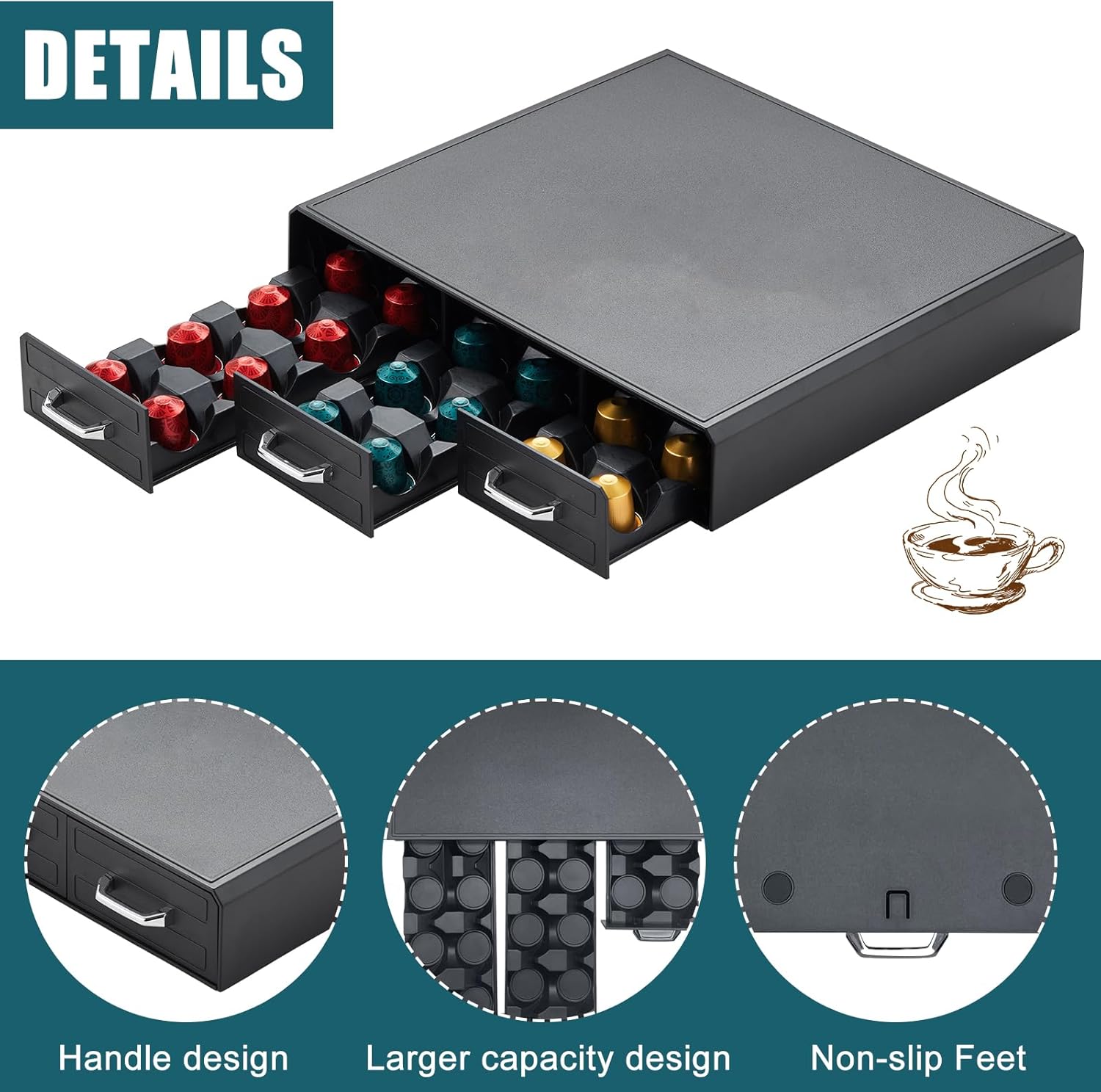 - Secure Non-Slip Feature: Designed with non-slip rubber feet, it always stays where you want it to stay, which makes it stable to hold your coffee maker, coffee cups, mugs, etc. in the keurig pod organizer.