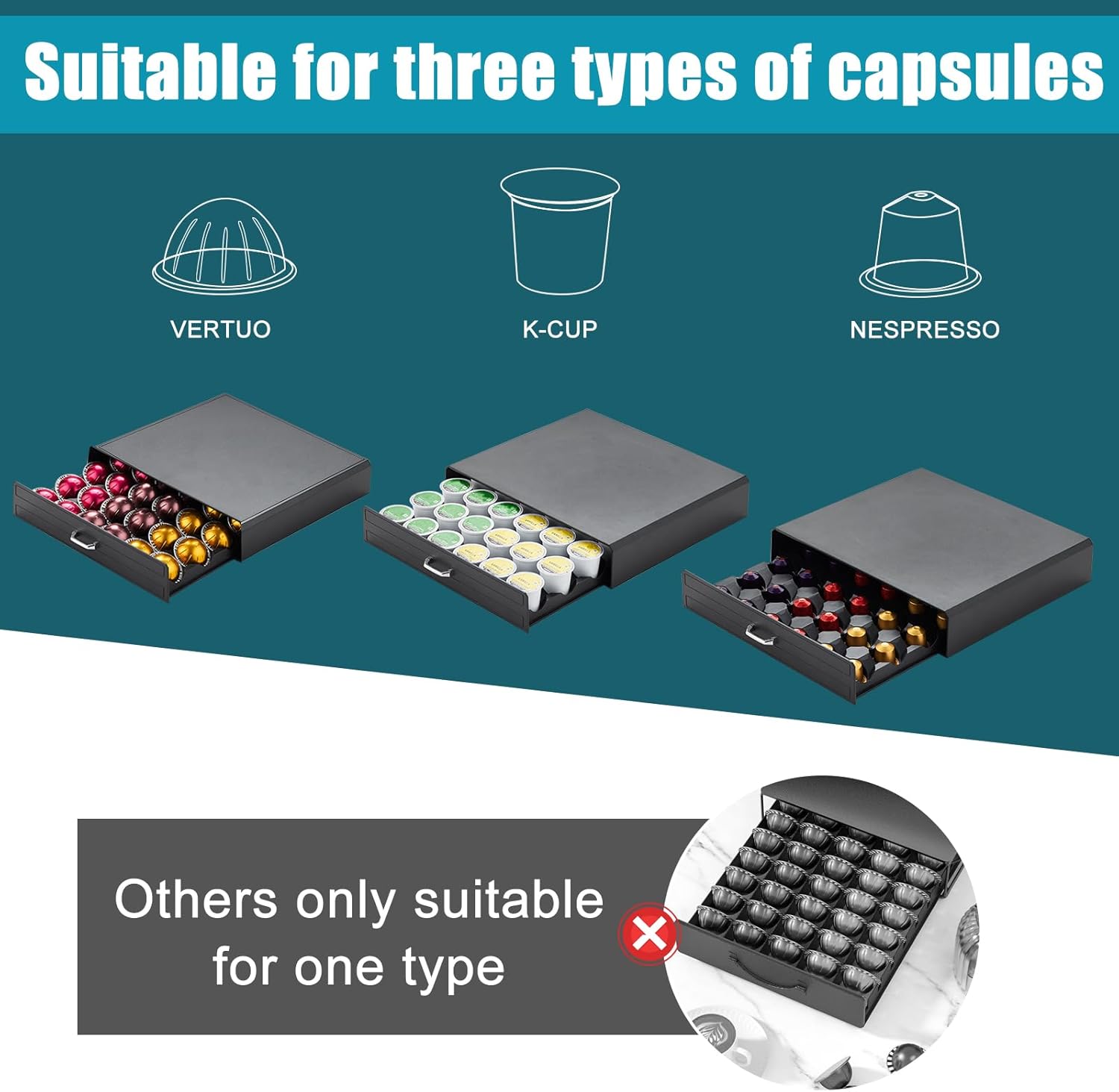 - Wide Compatibility: Our Coffee Pod Holder is compatible with 30 Nespresso Originalin/Vertuoline capsules or 30 K-Cup pods. Comes with a coffee pod storage for different capsule storage needs to satisfy any coffee lover's preference.