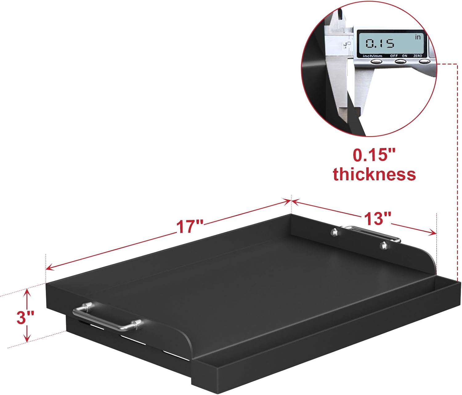 - Fit Perfectly To Various Models: Universal Griddle plate for gas grill/charcoal electric grills, gas stove. Fit Weber, Camp Chef, Charbroil, Nexgrill, Brinkmann, Charmglow, Kenmore, Dyna-Glo, Master Forge, Members Mark, Coleman, etc. Carbon steel griddle is suitable for camping, tailgating, and parties, 17" x 13" carbon coating cooking griddle - please check and compare the size of your grill before ordering