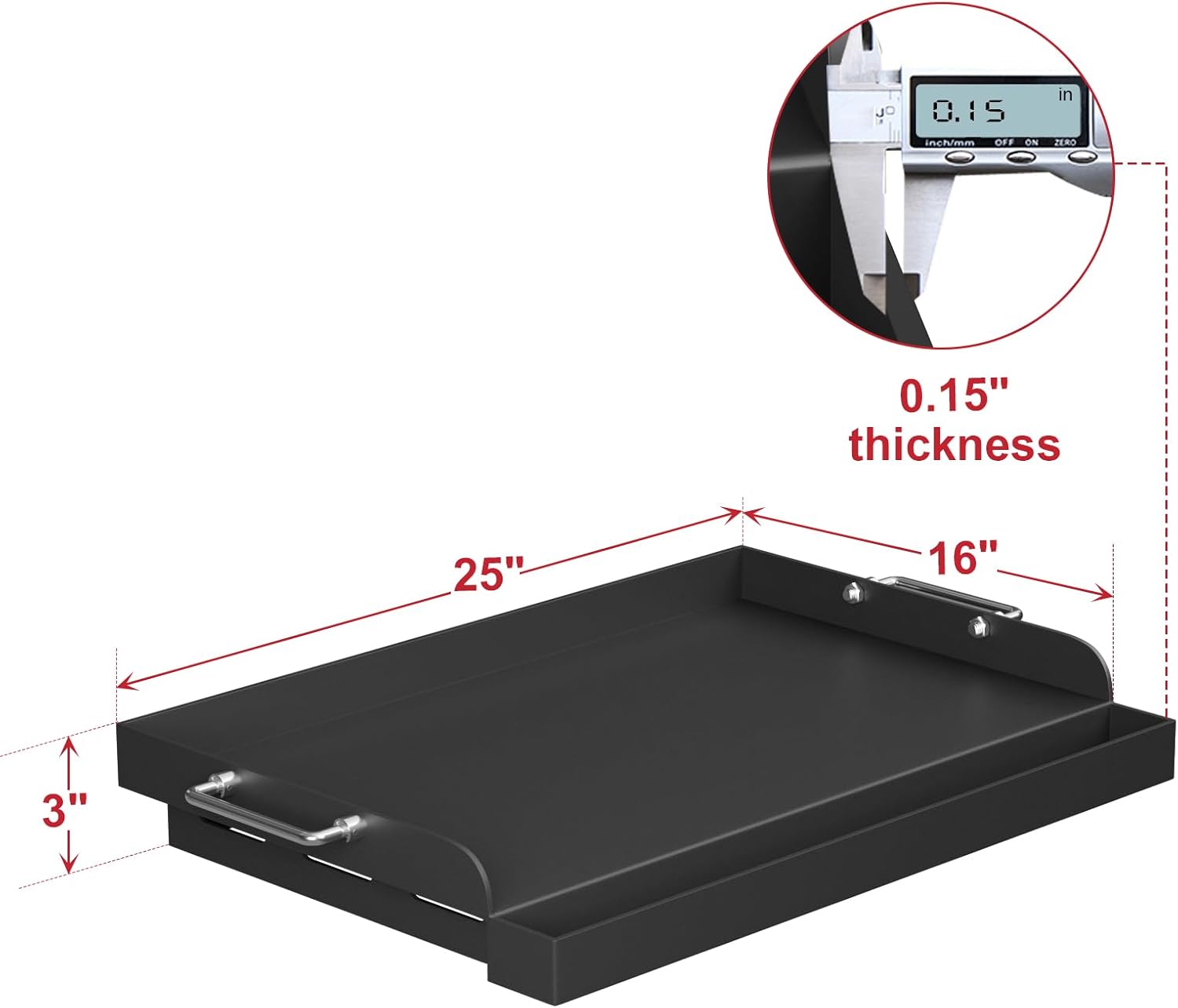 - Fit Perfectly To Various Models: Universal Griddle plate for gas grill/charcoal electric grills, gas stove. Fit Weber, Camp Chef, Charbroil, Nexgrill, Brinkmann, Charmglow, Kenmore, Dyna-Glo, Master Forge, Members Mark, Coleman, etc. Carbon steel griddle is suitable for camping, tailgating, and parties, 25" x 16" carbon coating cooking griddle - please check and compare the size of your grill before ordering