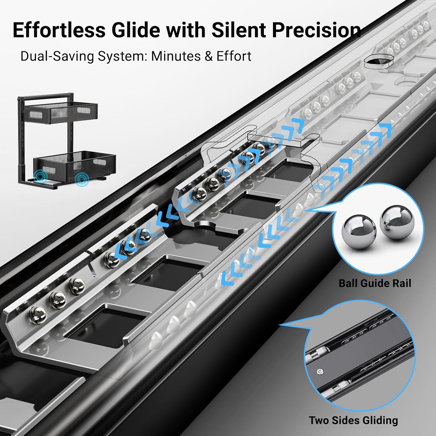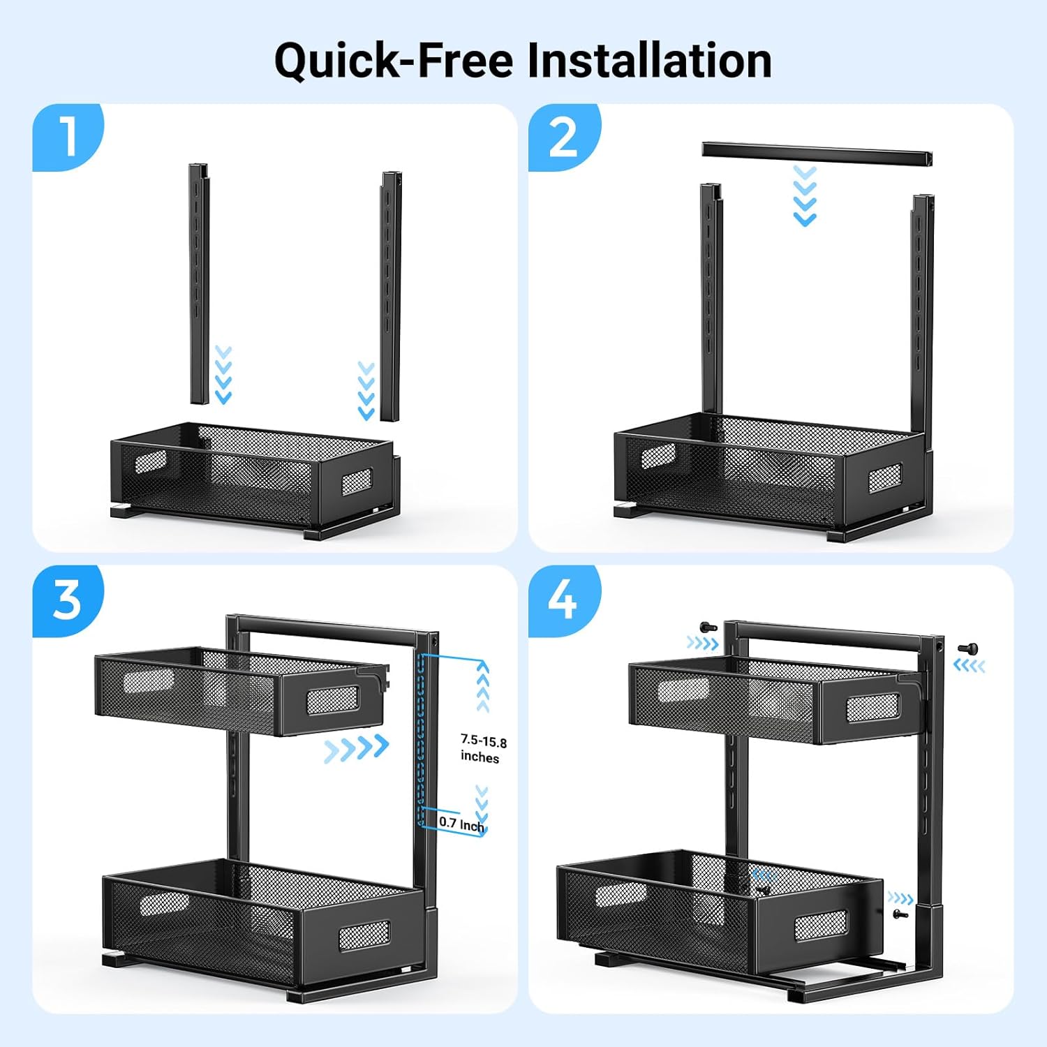Under Sink Organizer, 2-Tier Metal Under Sink Organizers and Storage, Slide Out Pull Out Cabinet Organizer for Kitchen, Bathroom, Pantry, Laundry, Study, Black