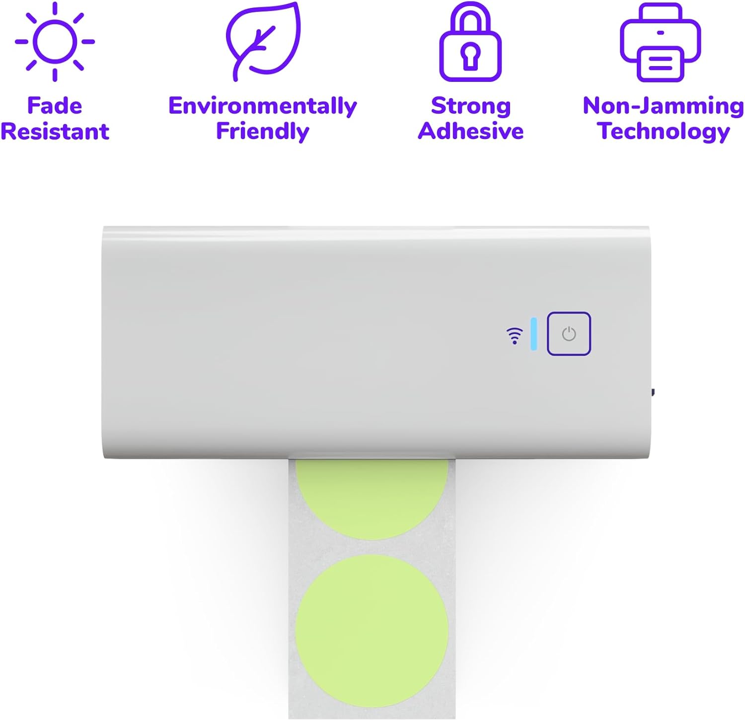 - HIGH-QUALITY THERMAL CIRCLE LABELS: These self-adhesive round thermal labels are specially designed for direct thermal printing, ensuring sharp, smudge-free, and long-lasting prints that are easy to read and scan. No ink, toner, or ribbons needed!
