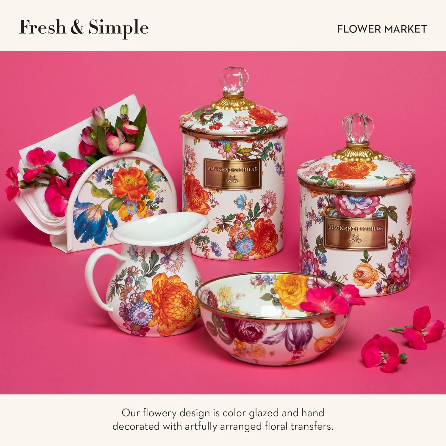 MACKENZIE-CHILDS Enamel Creamer and Sugar-Bowl Set, Cream Dispenser and Sugar Holder, Unique Kitchen Decor, White Flower Market