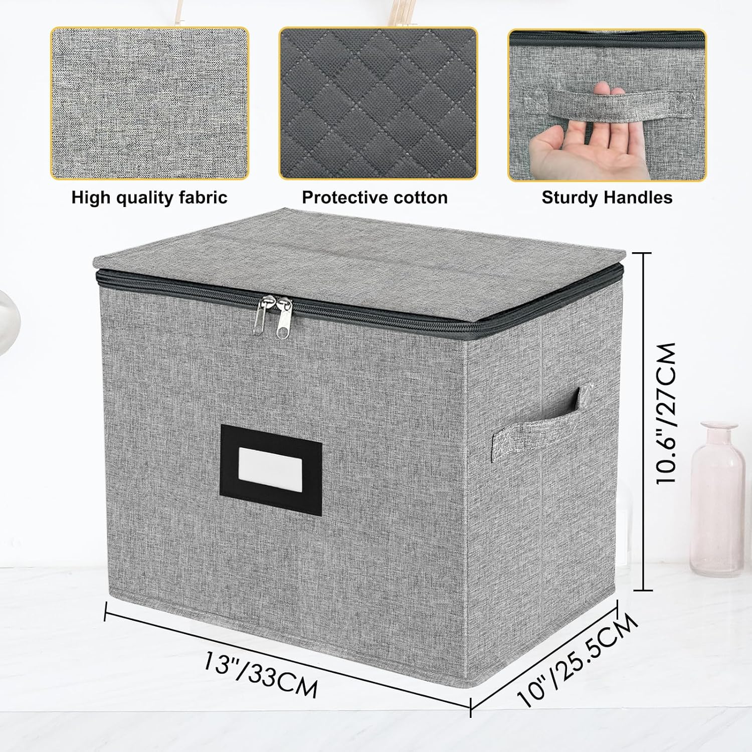 - 🥂【Convenient Design for You】-Our champagne flutes storage box holds 12 champagne flutes, the china storage case is 13" w x 10" d x 10.6" h. Each inside compartment is 3.25" x 3.3’’.our champagne glass storage box is foldable, and can be easily carried or stored when not needed.