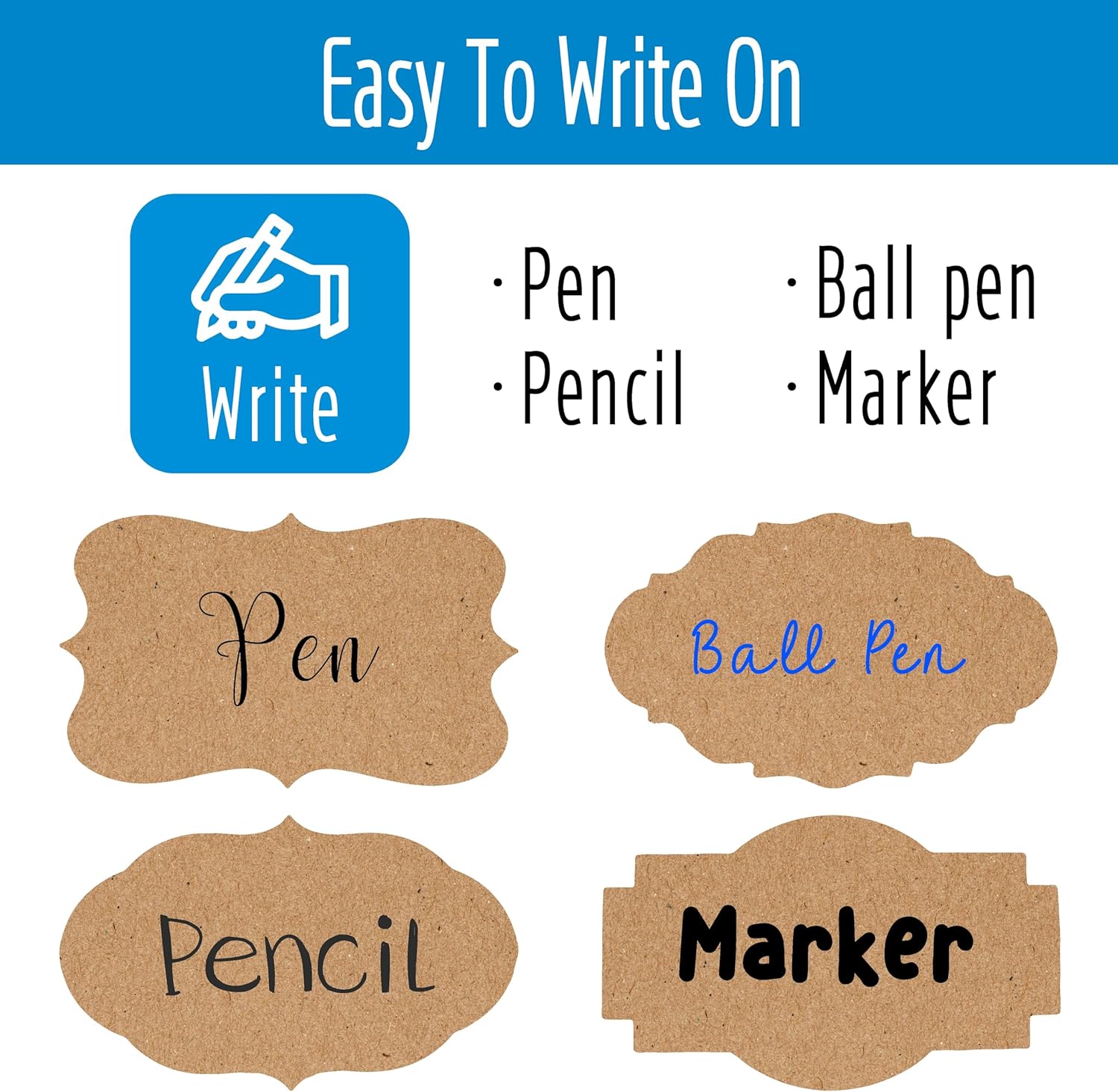 - PREMIUM QUALITY: Made of high quality Kraft paper with permanent adhesive, ensuring durability and long-lasting use. The sticker features a natural rustic charm, its smooth surface provides an ideal canvas for writing, drawing, or stamping designs. Mark on these labels with any pens is no problem.