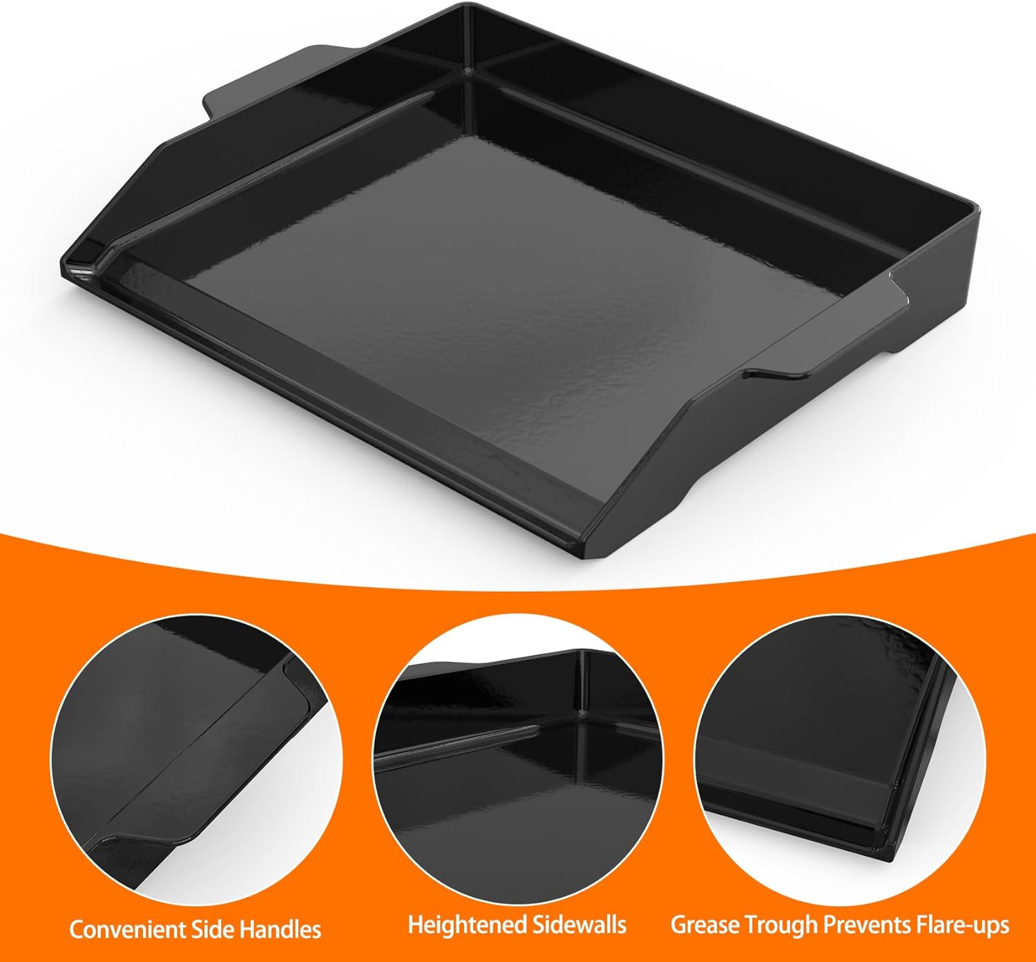 - Convenient Design: Featuring 5.5cm raised sidewalls for easy food turning and to prevent items from sliding off. With handles on both sides, it's easy to move from one place to another, making it a convenient companion for your cooking needs.