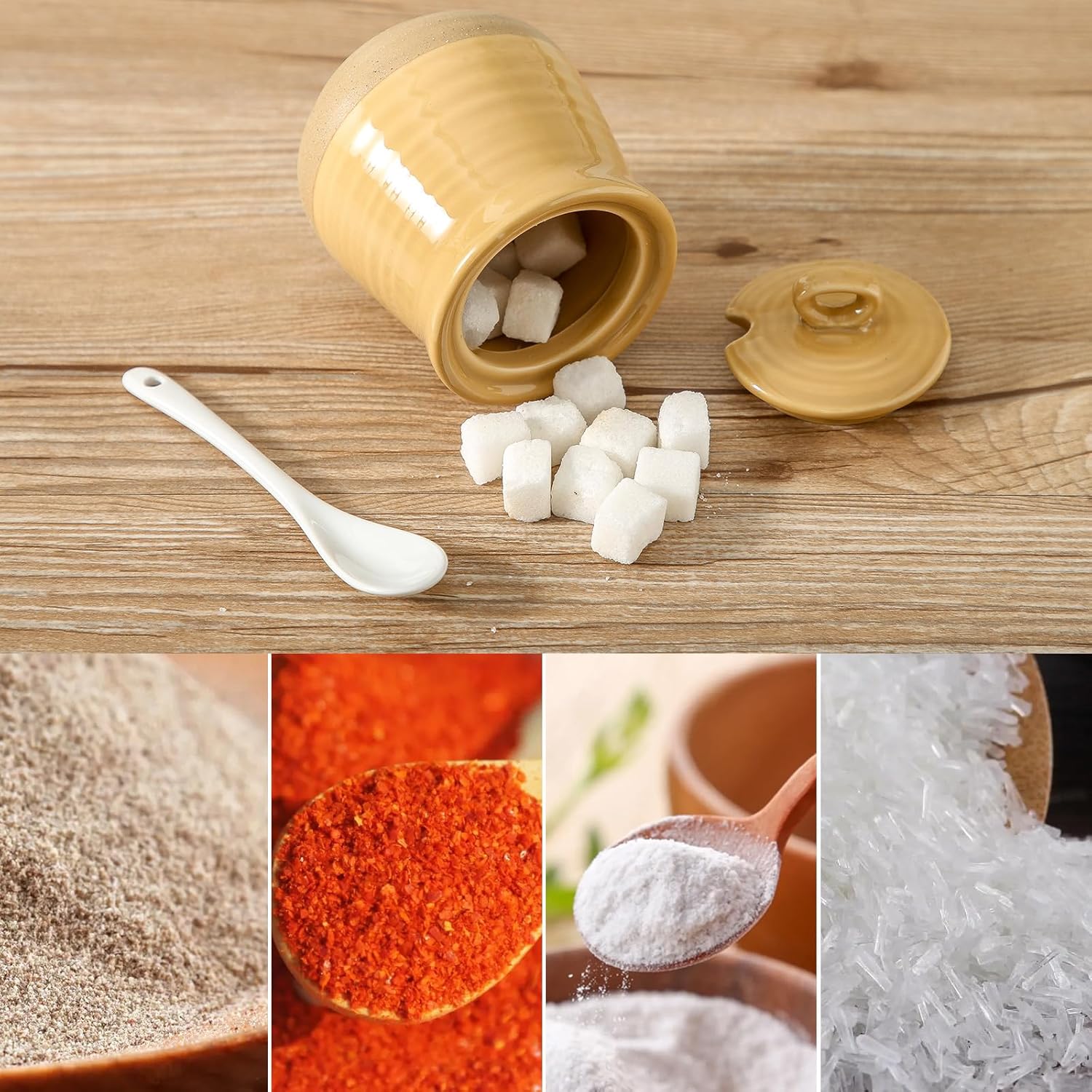 - Versatile Utility: This set includes a sugar bowl with a lid that serves a multitude of purposes. It's not just for sugar; it's an ideal container for salt, monosodium glutamate, pepper, and various other seasonings. The included spoon adds extra convenience to your daily use.