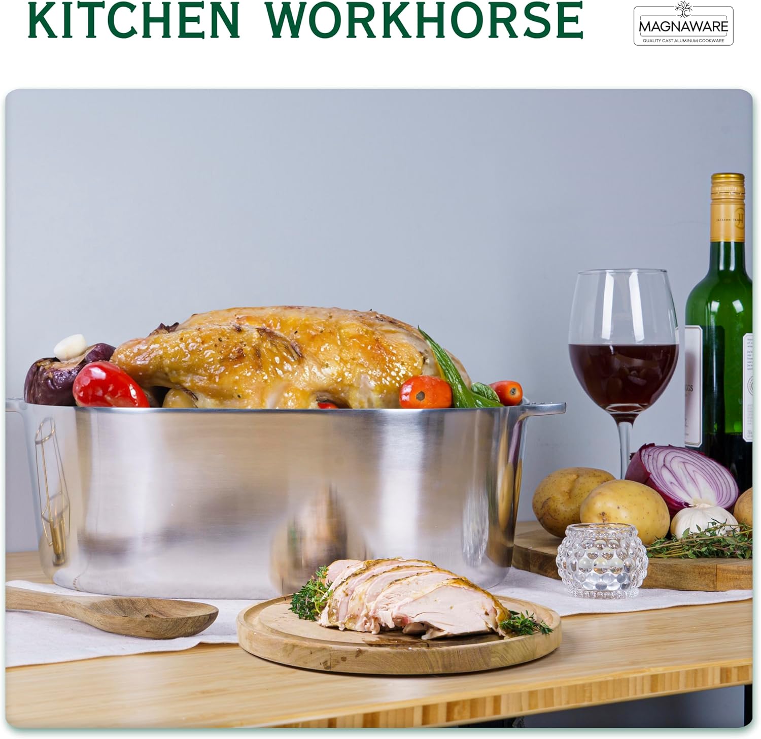 - BUILT TO LAST GENERATIONS: Constructed for durability, this heavy-duty cast aluminum pot is oven safe up to 450°F. MAGNAWARE dutch ovens feature a classic polished aluminum finish that complements any kitchen aesthetic. For best results, simply use a small amount of oil, and to preserve the surface, we recommend silicone, wood, or nylon utensils over metal ones.