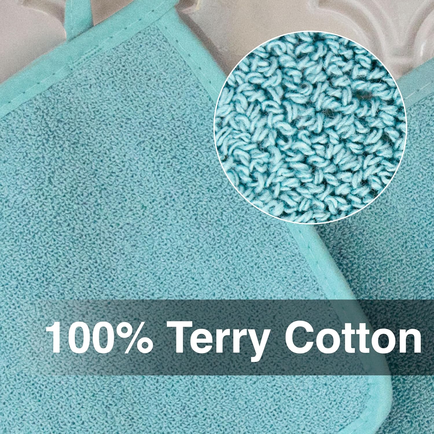 RITZ Terry Potholder & Hot Pad: Unparalleled Heat Resistant, Durable 100% Cotton – Ergonomically Designed for Optimal Grip – Easy-Care Machine Washable – 4-Pack, Dew