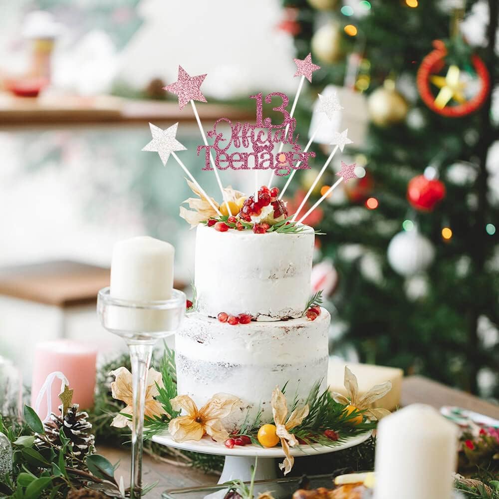 Glittery 13 Ofiicial Teenager Cake Topper with Star,13th Happy Birthday Cake Topper Party Decorations Party Supplies for Boys Girls Rose Gold