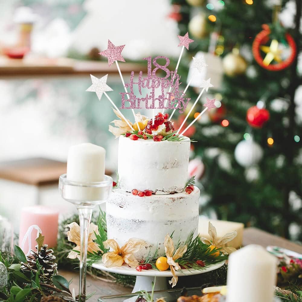 Glittery 18th Happy Birthday Cake Topper with Star,Personalised 18 Birthday Cake Toppers Party Decorations Party Supplies for Boys Girls Rose Gold