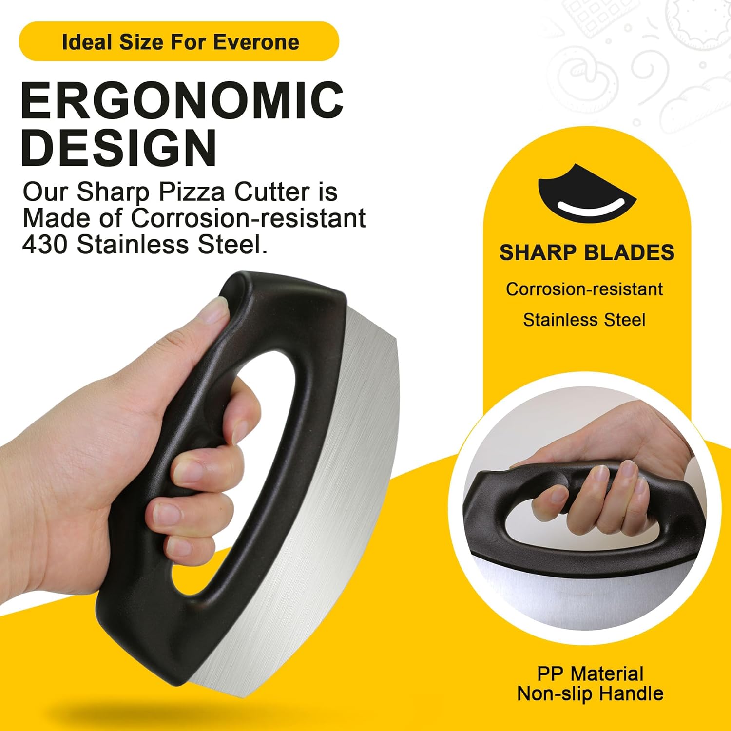 - Cut what you want: Pizza cutter with high-quality 430 stainless steel blades, sharper and faster, you can cut pizza, waffles, pies, cookies, dough, vegetables, meat.
