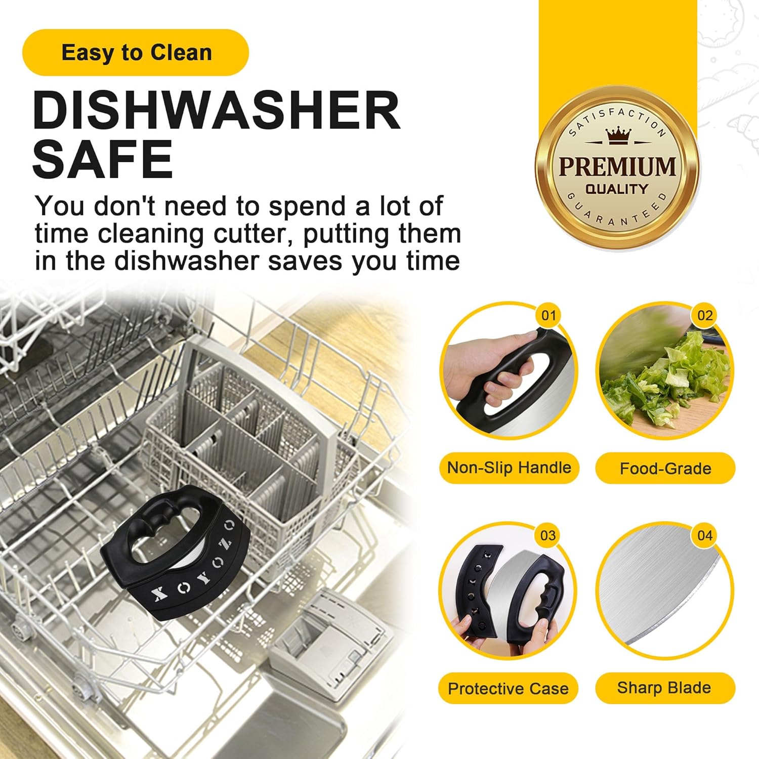 XoYoZo Pizza Cutter Salad Chopper Large Stainless Steel Blade with Cover, Dough Rocker Mezzaluna Knife for Kitchen Gadgets