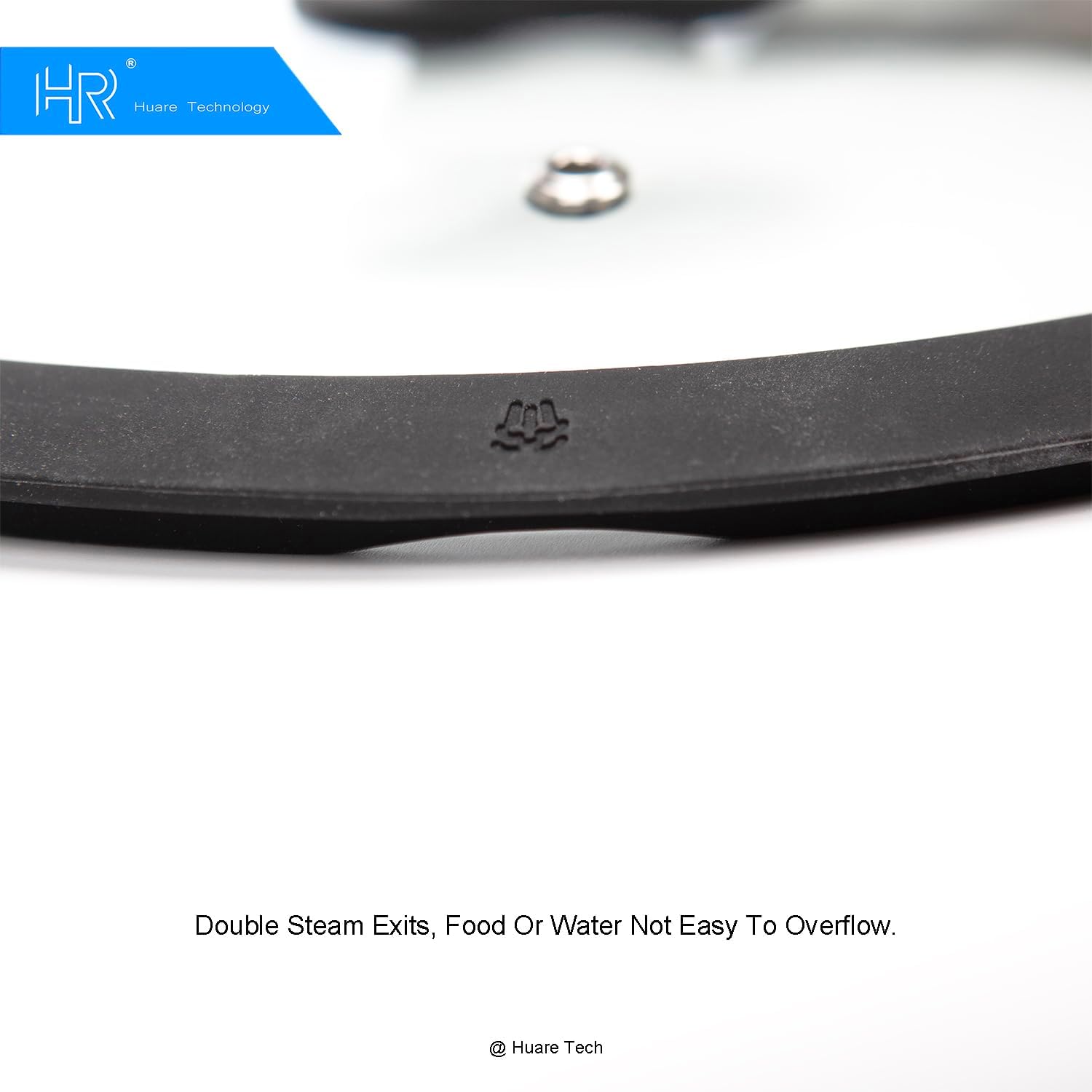 Silicon Glass Lid for Pot,Pan,Skillet Fits 12"(30CM) Cookware Silicon lid Dishwasher Safe, Replacement Lid Vented Tempered Glass with Heat Resistant Silicone Rim By HR Huare Technology, Black,1 Pack