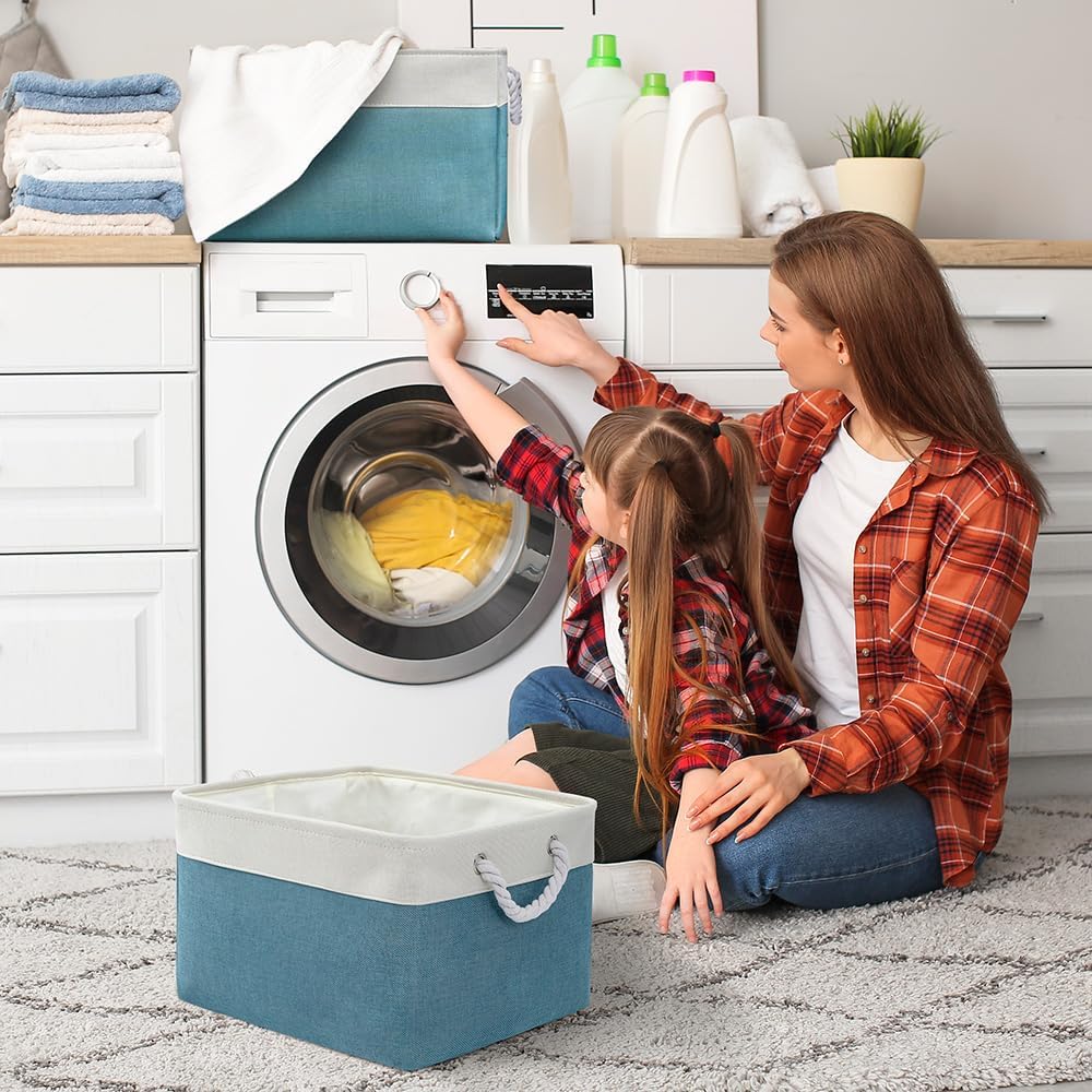 - Baskets are lightweight, sturdy, and easy for kids to place on the floor to grab their favorite toy. Easy transport with rope handles; Lightweight for carrying and organizing. Structure can allow you put more heavy stuffs. Modern and stylish design perfect for any room decor, It is so universal to work anywhere you are looking to get organized