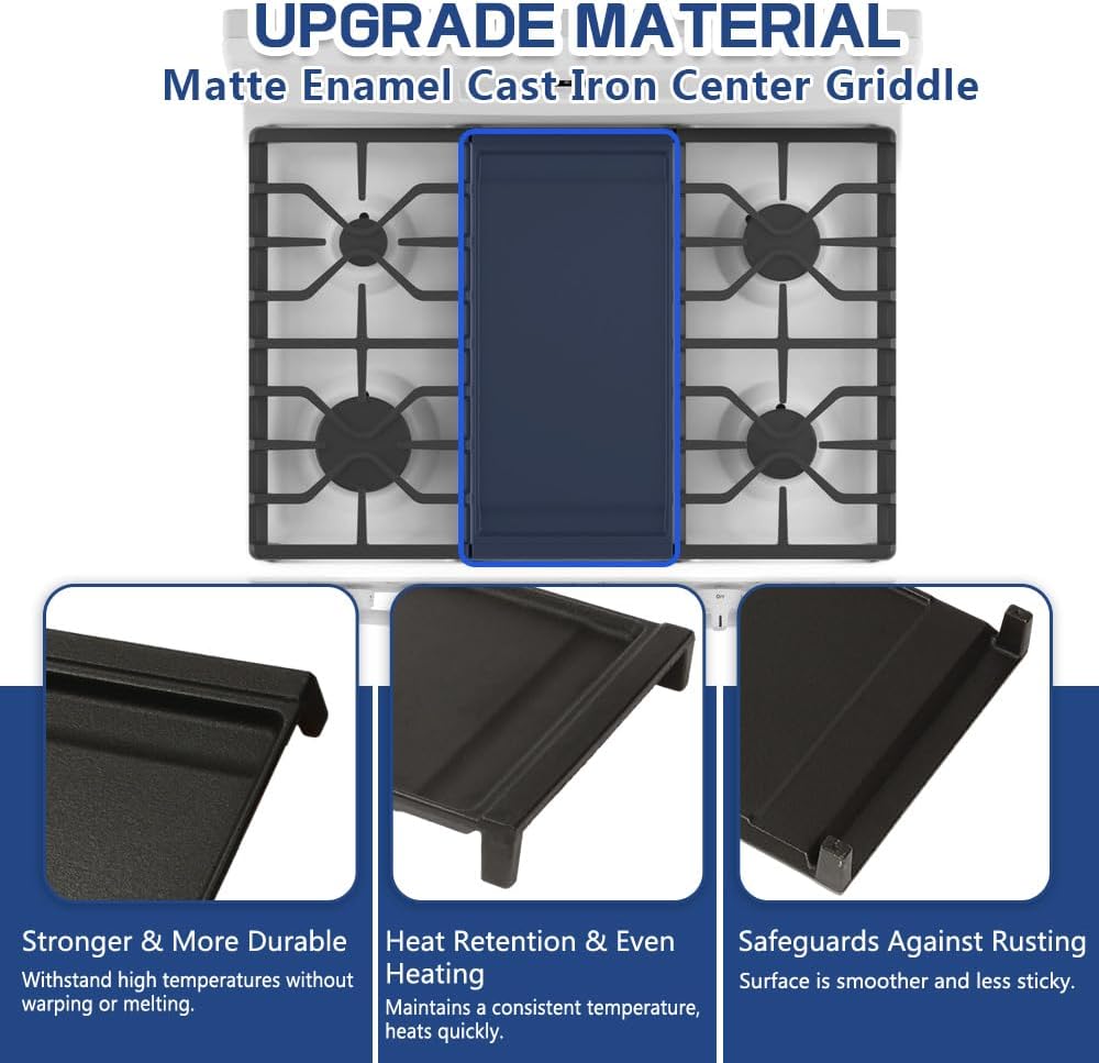 - β UPGRADE MATERIAL - The WB31X24738 Gas Range Griddle for GE is made of premium matte enamel cast iron that more durable, not easy to deform, with a longer service life. Upgraded surface manufacturing process makes the surface smoother and less sticky than others. Use less oil to cook delicious food.