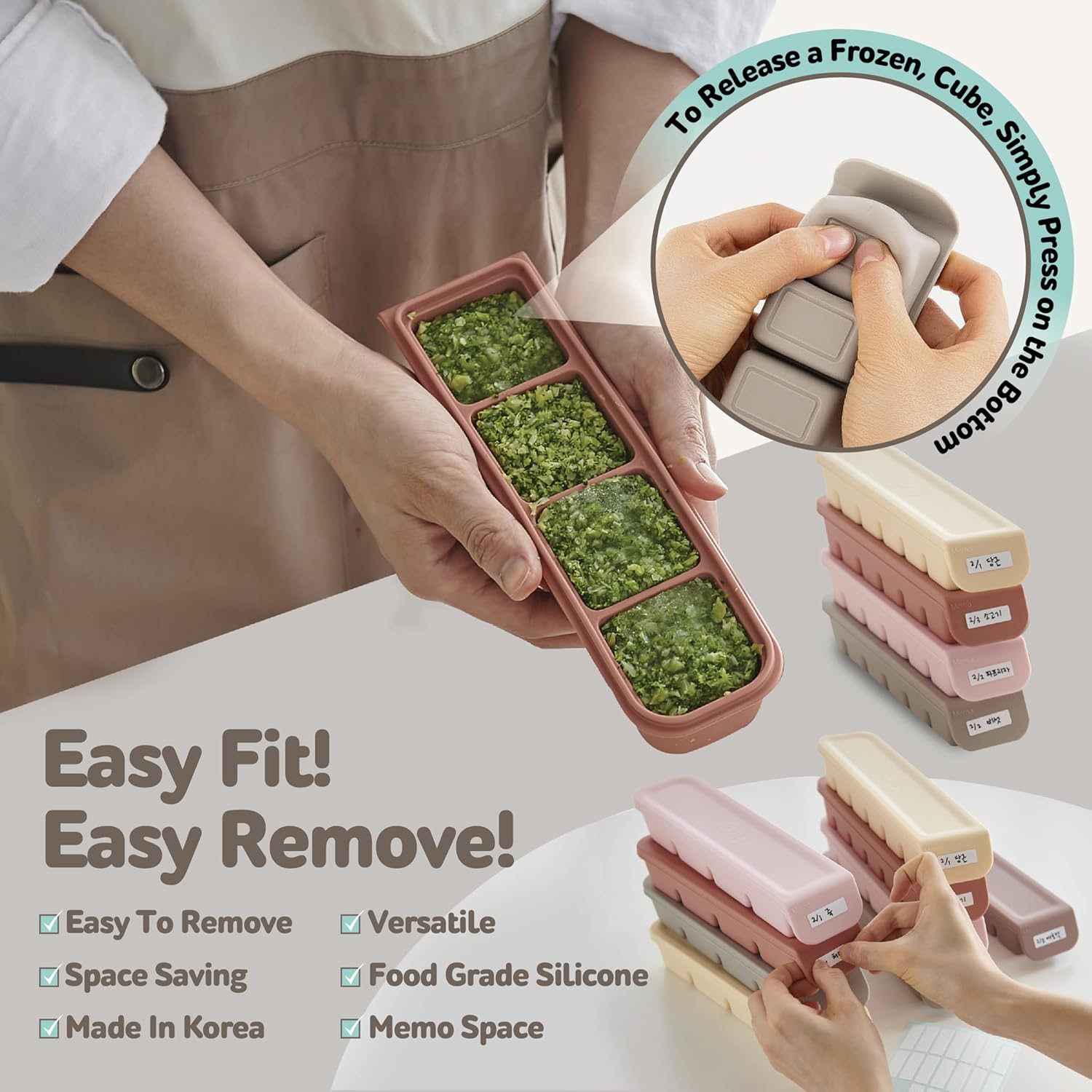 - 【Versatile and Durable】 Made from 100% food-grade, BPA-free silicone, these baby food freezer containers are family-friendly and versatile, being both microwave and steamer safe for your cooking convenience