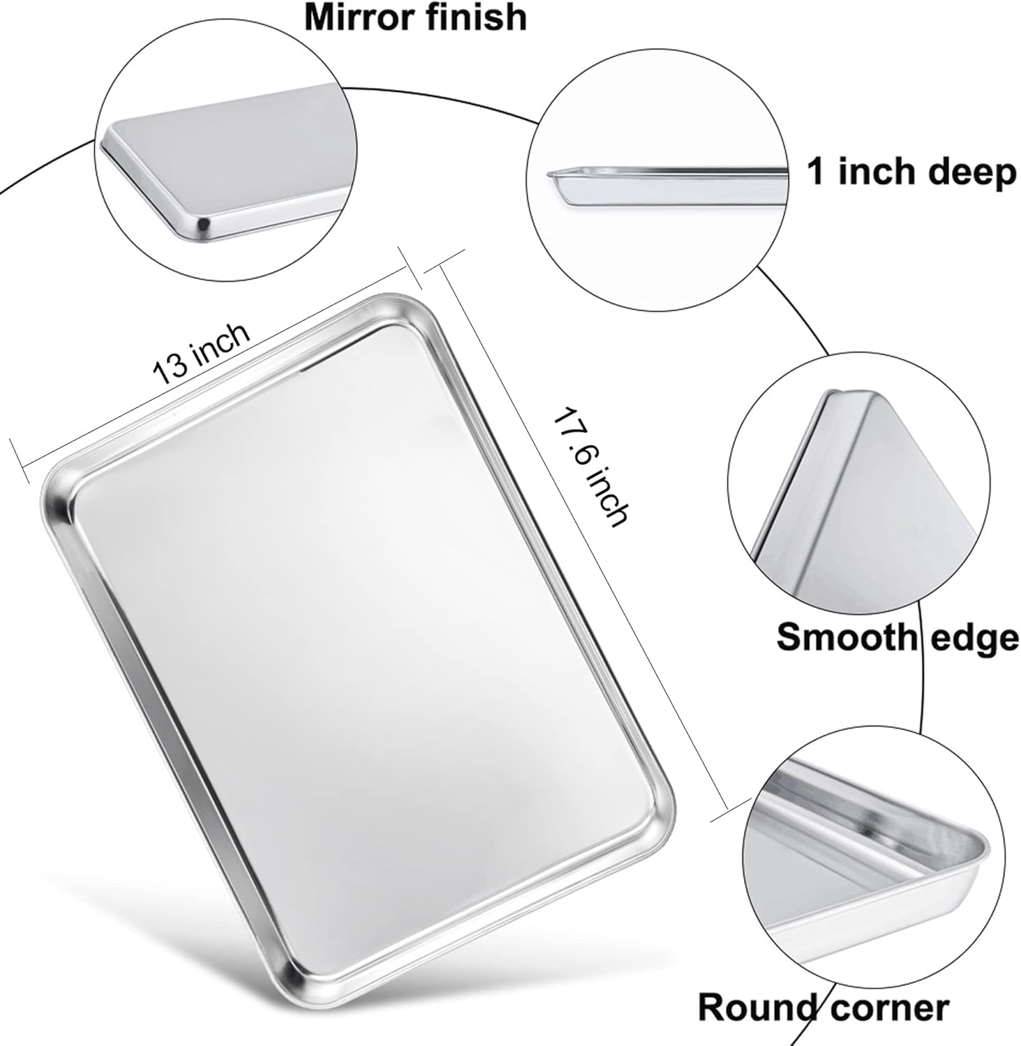 - Healthy & Heavy Duty: TeamFar baking sheets with racks are made of pure stainless steel, Without any toxic coating and wonβt leach harmful substances into your food, Rust and corrosion resistance, Healthy for daily using, Constructed with heavy gauge steel, Sturdy for lasting a long term