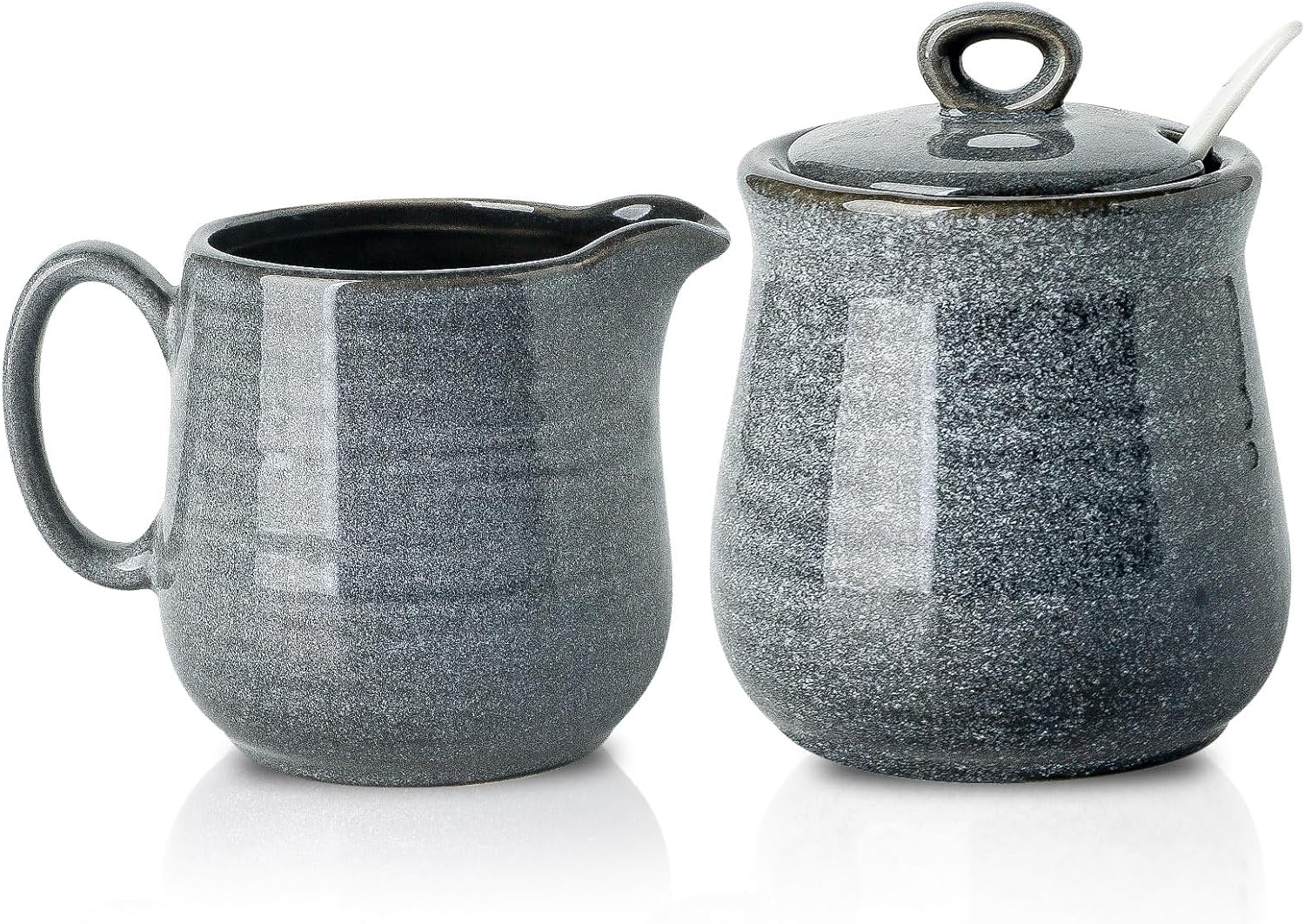- Unique Color: The color of our sugar and creamer set is unique in the market. The unique grey color is a delight to the eye. In addition to being a milk jug, it is also an artifact that can be placed on the dining table,kitchen and coffee bar to enhance the artistic atmosphere of the home. artifact that can be placed on the dining table,kitchen and coffee bar to enhance the artistic atmosphere of the home.