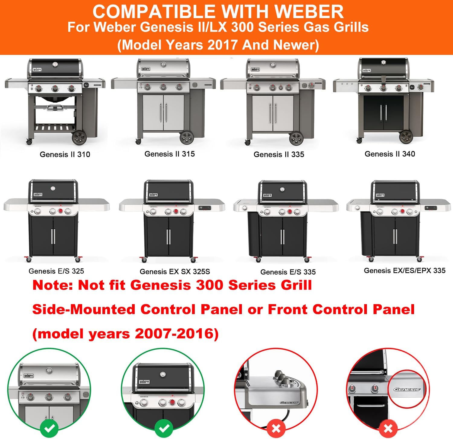 - 【Perfect for Weber Genesis II 300 Series】Compatible with Weber Genesis II 300 series gas grills(2016 and newer), such as for Weber Genesis II E-310, Genesis II S-310, Genesis II E-315, Genesis II E-330 Genesis II E-335 Genesis II S-335 Genesis II S-345. Genesis II SE-310, Genesis II SE-335, Genesis II CE/SE-330, Genesis II LX E/S-340. Also Compatible with weber genesis ii CSE-315/CSS-315, genesis ii CSS-335/CSE-335, genesis ii LX CSS-340/CSE-340 gas grills.