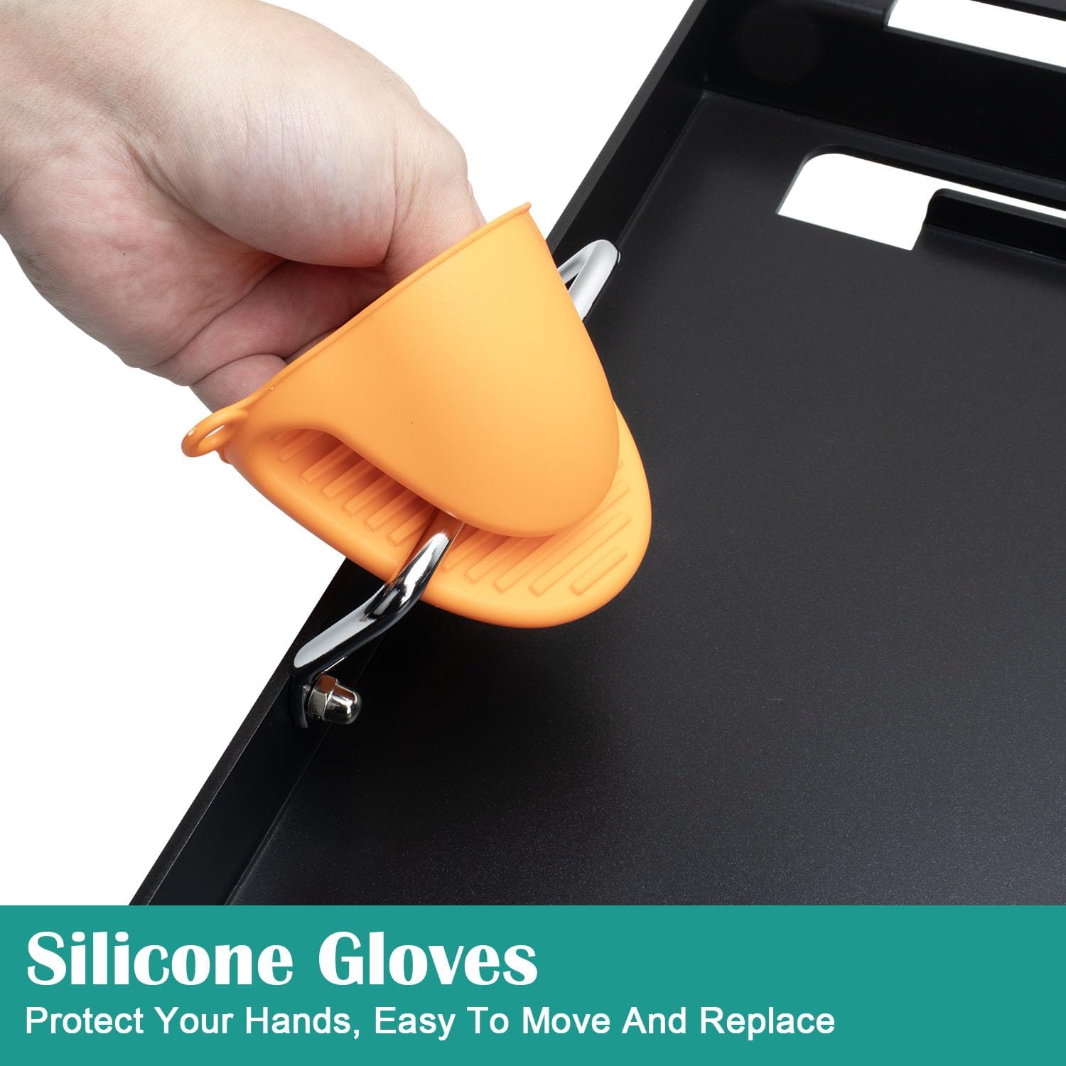 - 【 Silicone oven mitts】Silicone gloves that are thick heat resistant potholders made from premium food grade material; Mittens are rated to protect you from heat up to 446℉(230℃), it allows you to No need to wait for the griddle to cool down when replacing, making it quicker and easy to replace.