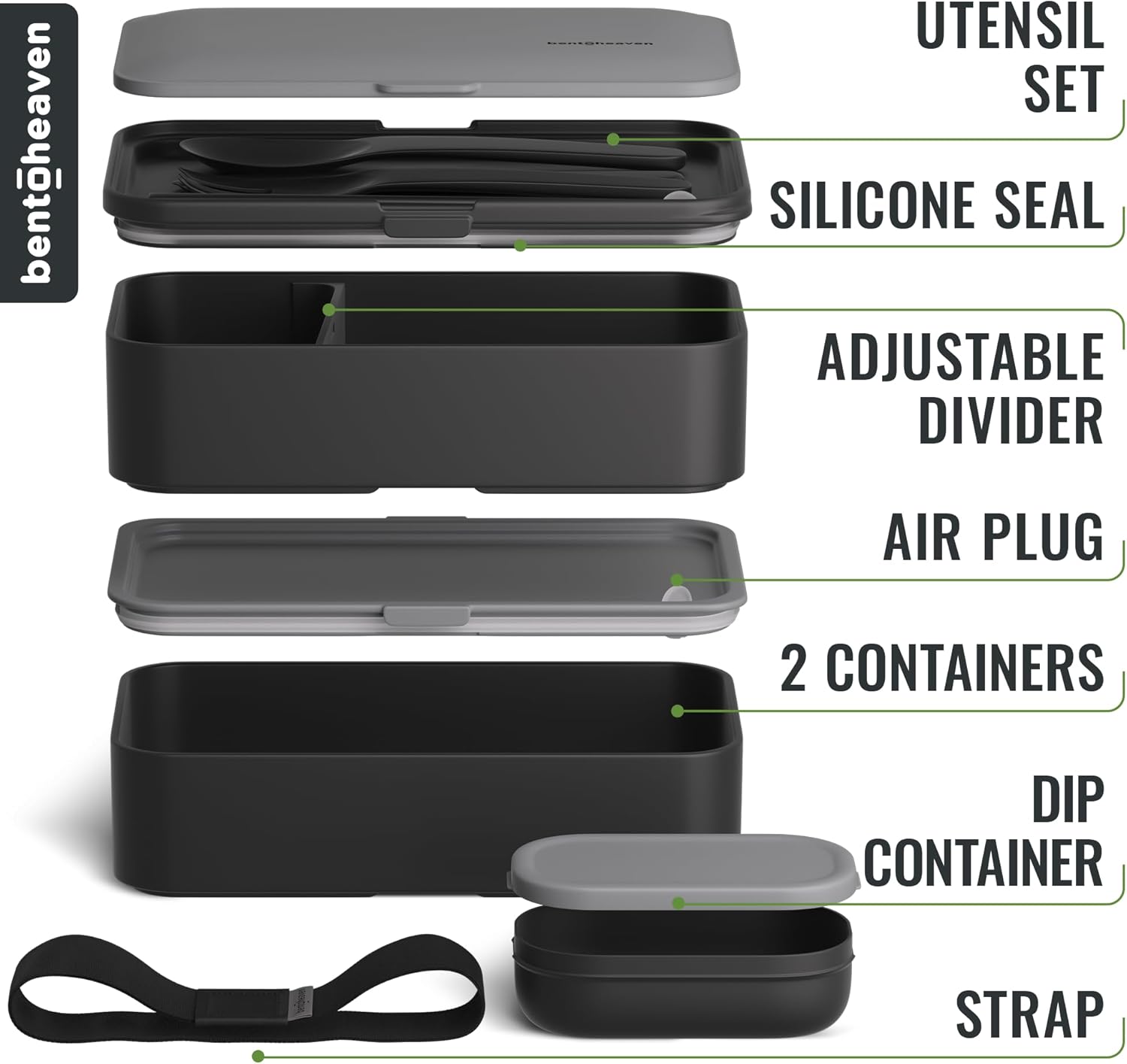 - Leakproof Bento Lunch Box! The Bentoheaven lunch boxโs strong silicone makes it 100% leak-proof, while remaining super easy to open due to the built-in air vent plug.
