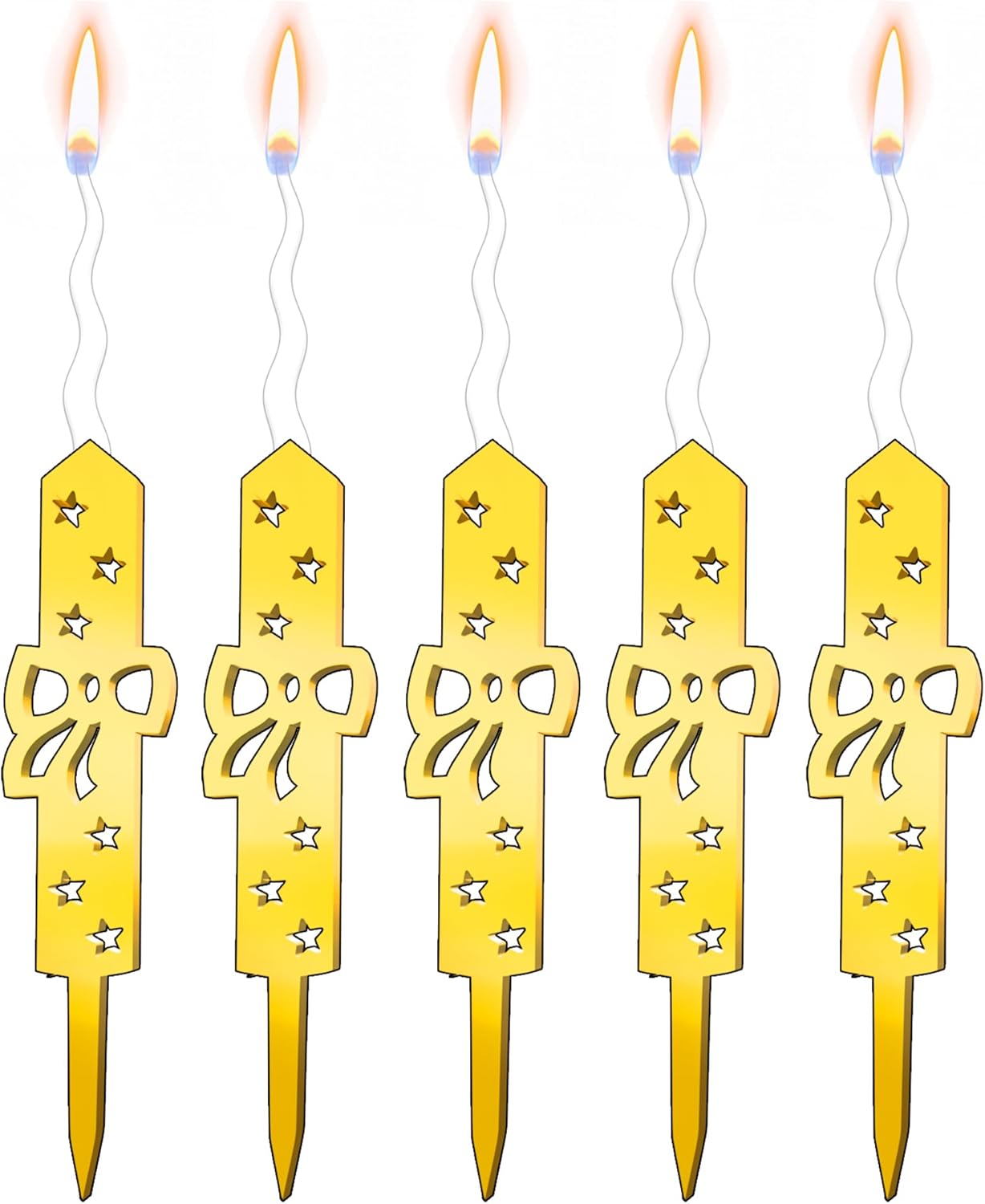 Set of 5 Reusable Gold Romantic Cake Candle - Luxury Cake Topper Candle for Birthdays, Weddings & Anniversaries - Reusable Food Safe Acrylic, Shiny Mirror Finish - Happy Birthday Cake Topper Decor
