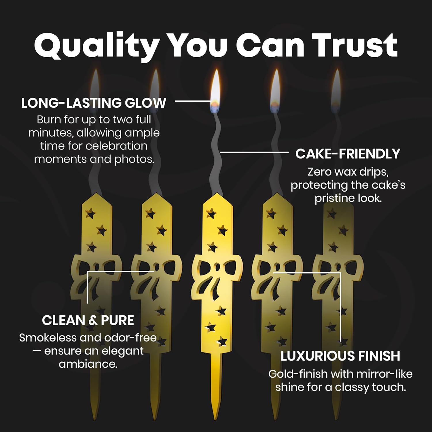 - Add Elegance to Your Celebration: This luxury cake topper candle is designed to instantly elevate your celebrations. With its premium gold glitter finish, this candle becomes the focal point on birthdays, weddings, and anniversaries. Whether it's a first birthday or a golden anniversary, let this striking centerpiece make your event unforgettable.