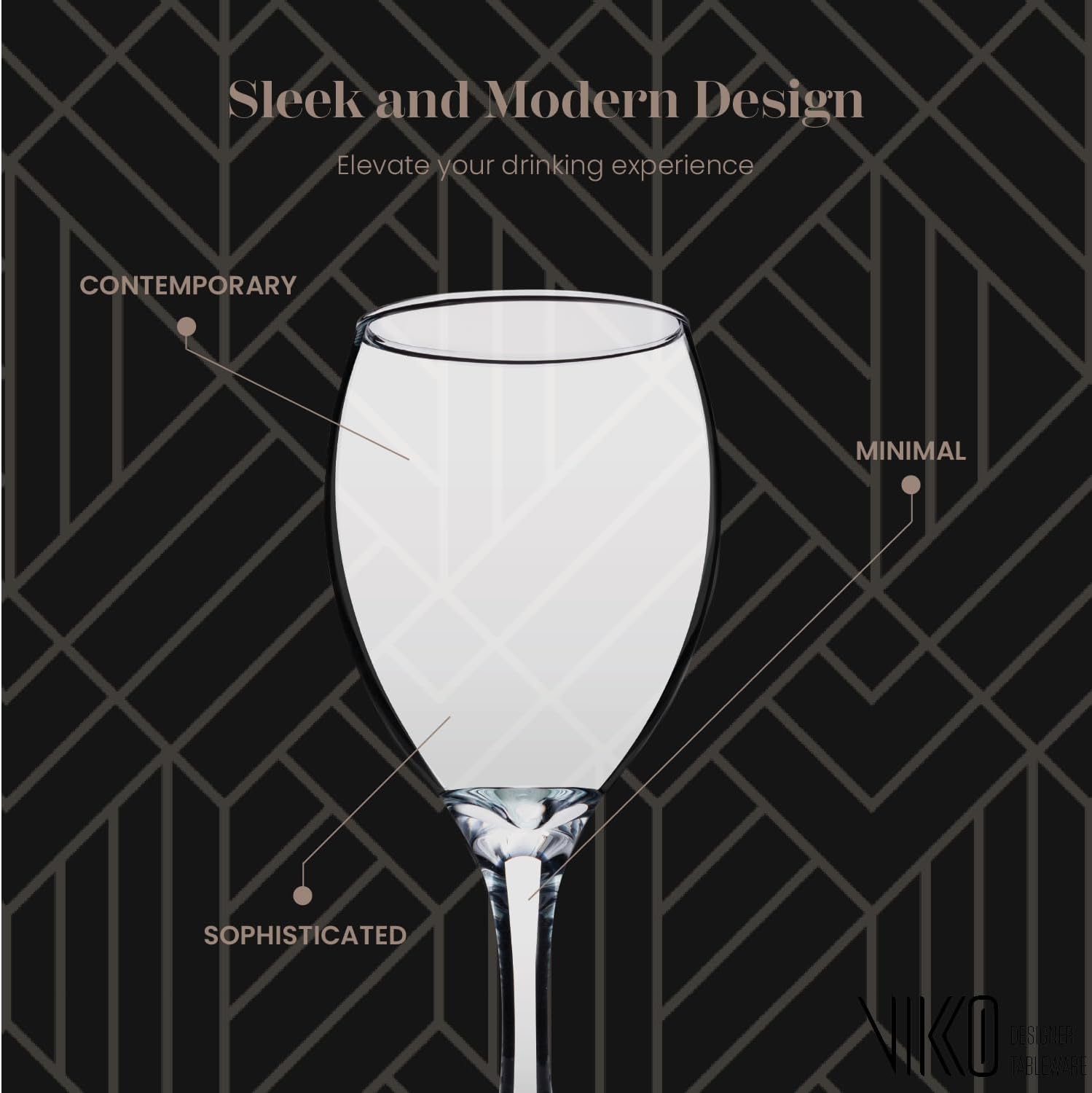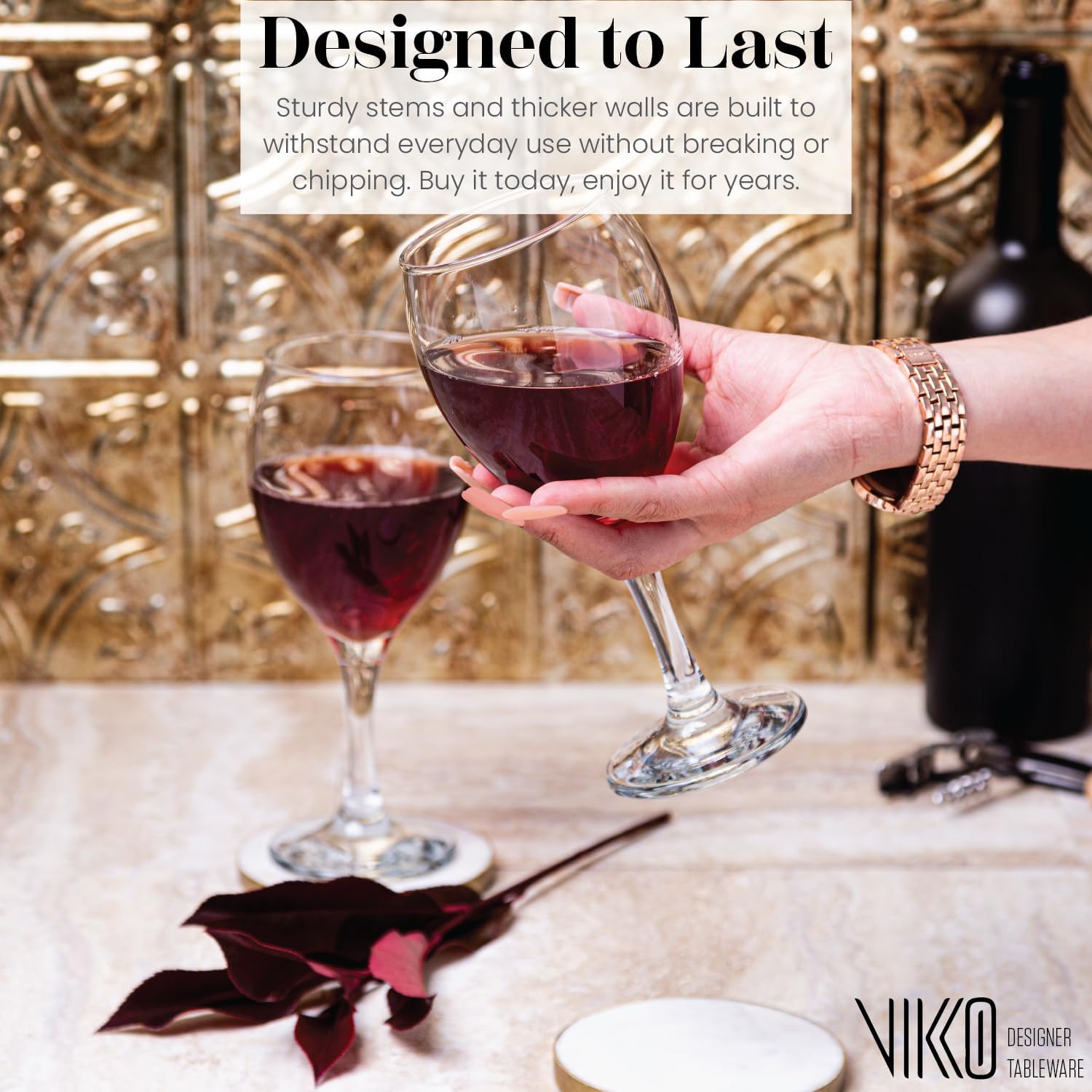 Vikko Wine Glasses, 15 Ounce Stemmed Set of 6 for Red and White, Thick and Durable Clear Glass