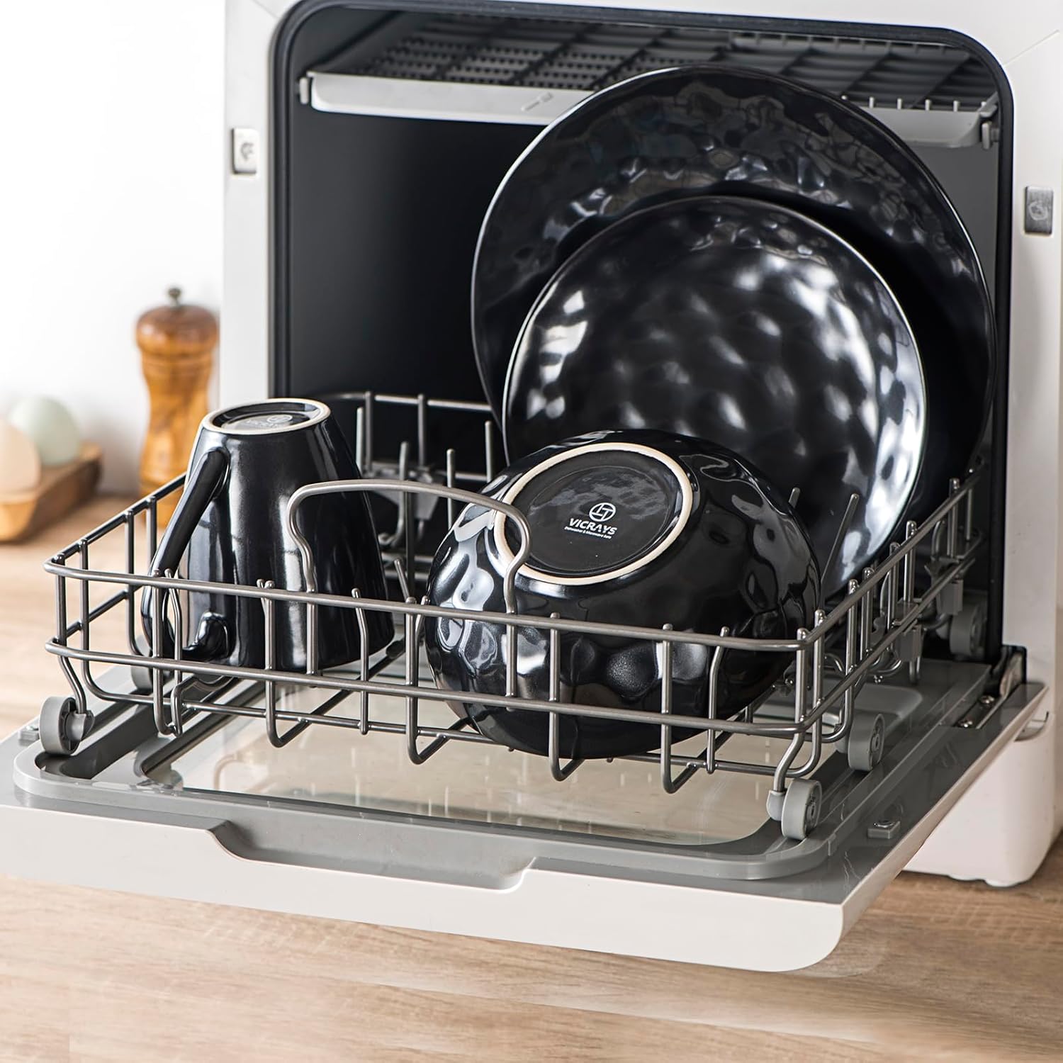 vicrays Ceramic Pasta Bowls Set, 32 Ounce Soup Bowls, Large Salad Bowls, Chip Resistant, Dishwasher Microwave Safe, Fluted stoneware Bowls for Kitchen, Serving Bowls - Set of 6 Black