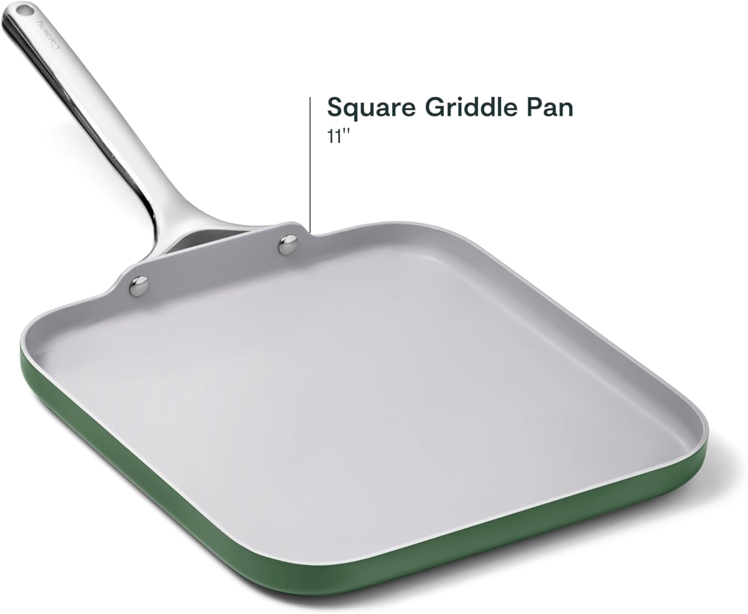 Caraway Square Griddle Pan - 11” Square Pan - Non-Stick Ceramic Coated - Non Toxic, PTFE & PFOA Free - Oven Safe & Compatible with All Stovetops - Sage