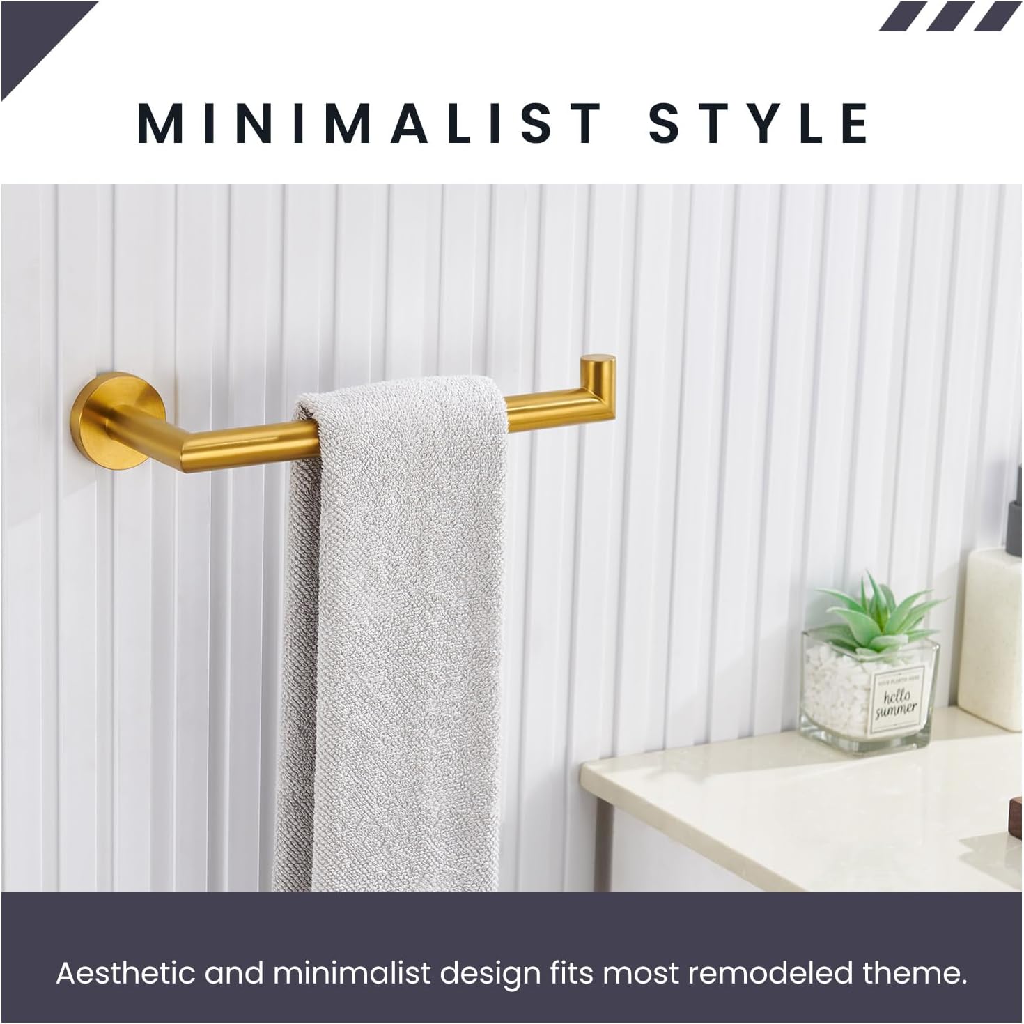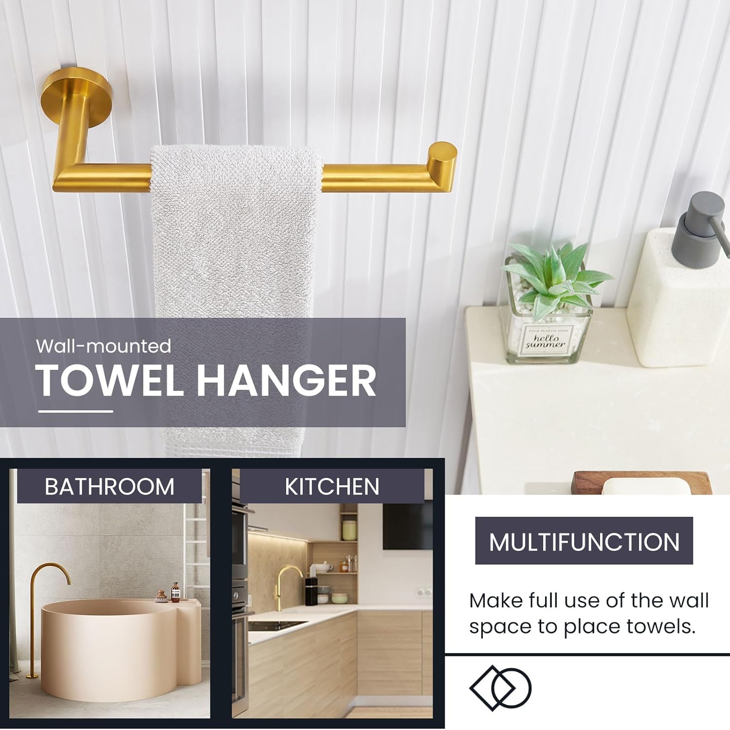Suyar Brushed Gold Towel Holder, SUS 304 Stainless Steel Bathroom Kitchen Hand Towel Rack Bar for Wall