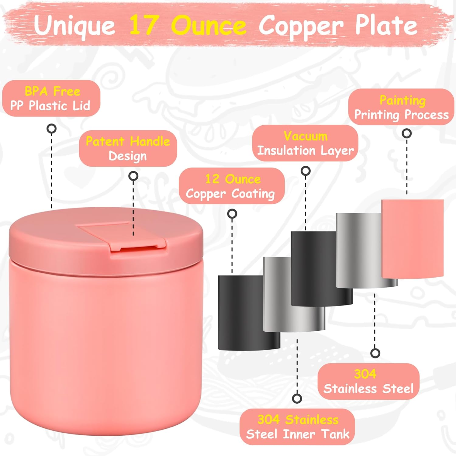 - Use Tips and Notes: In order to keep food hot or cold for a longer time, we recommend preheating/precooling with hot water/ice water for 5~10 minutes before putting food or soup into the food jar, and then put the food in. Note that when you disassemble the cover for cleaning and then reinstall it, be sure to lift the top of the cover before installing it. Otherwise, it will not be firm!!!