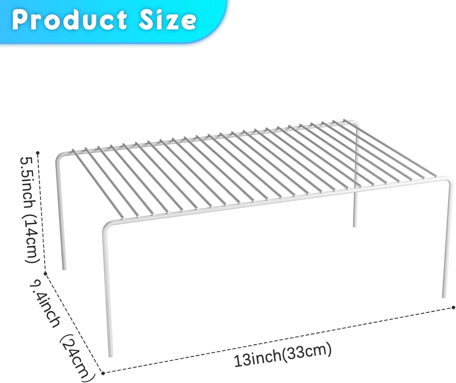 - Perfect Size: Each wire shelf measures 13''L x 9.4''W x 5.5''H. Perfect size makes this cabinet shelf rack perfect for you to organize your kitchen supplies, you can easily organize your jars, pots, pans and spices etc