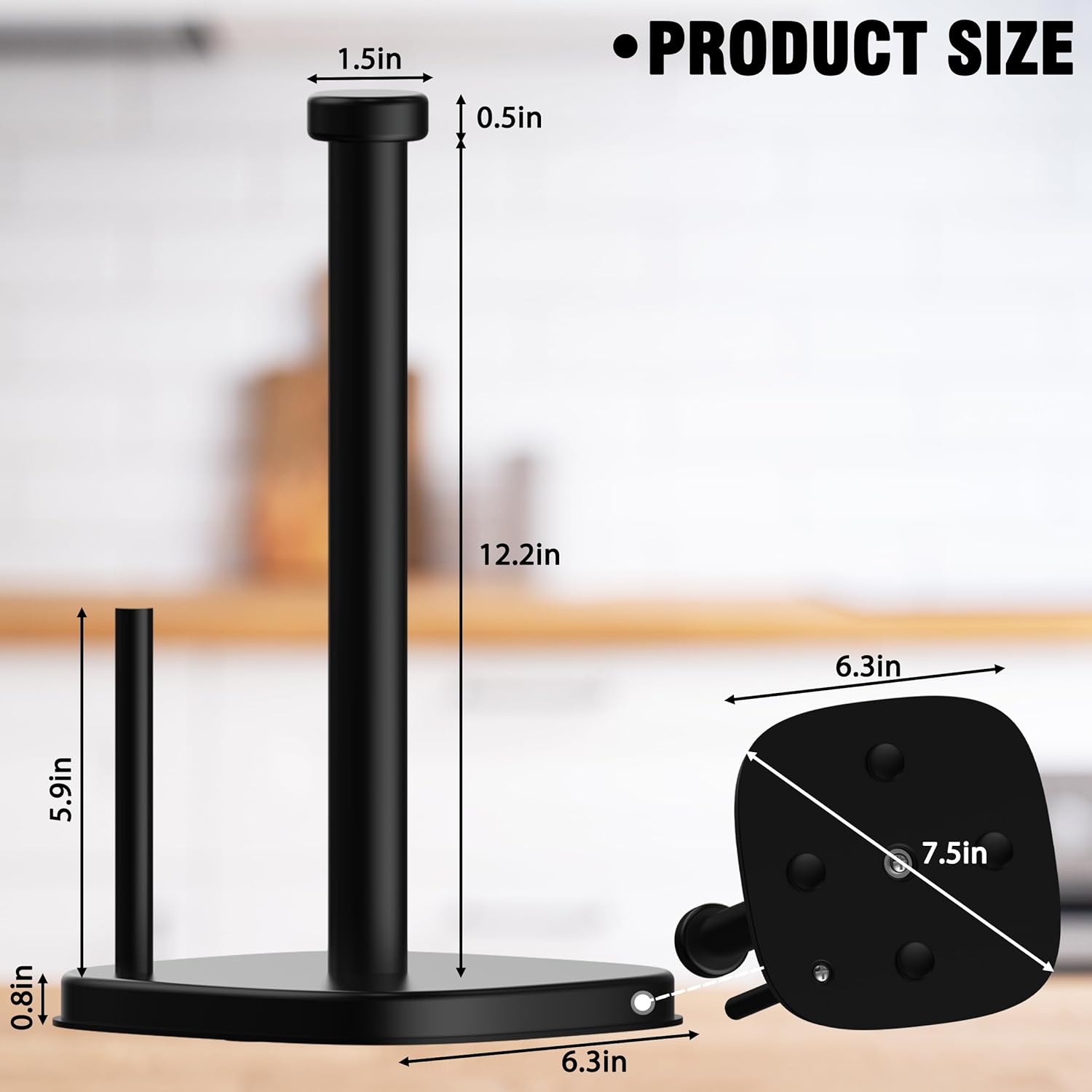 - 【Upgraded Square Base】The unique square base design of the paper towel holder makes your kitchen countertop look elegant and modern. The side bar design prevents the paper towel from sagging.