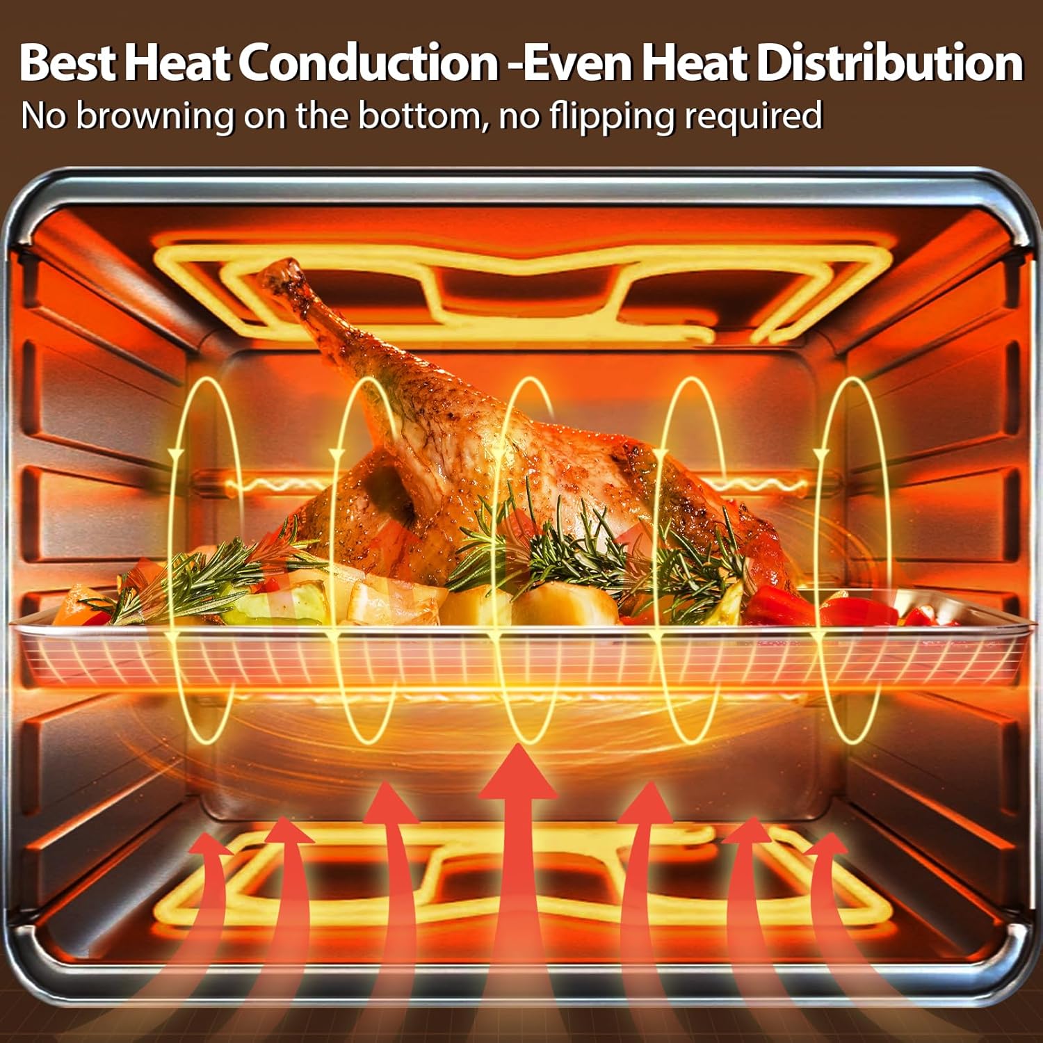 - High-Quality Stainless Steel: Our baking sheet is made of professional food grade high quality stainless steel, with a thickness of 0.8 mm, making it extremely sturdy and durable. And it can withstand temperatures up to 450Β°F, and the reinforced encapsulated steel edges prevent warping, ensuring that our baking pan remains perfectly shaped forever