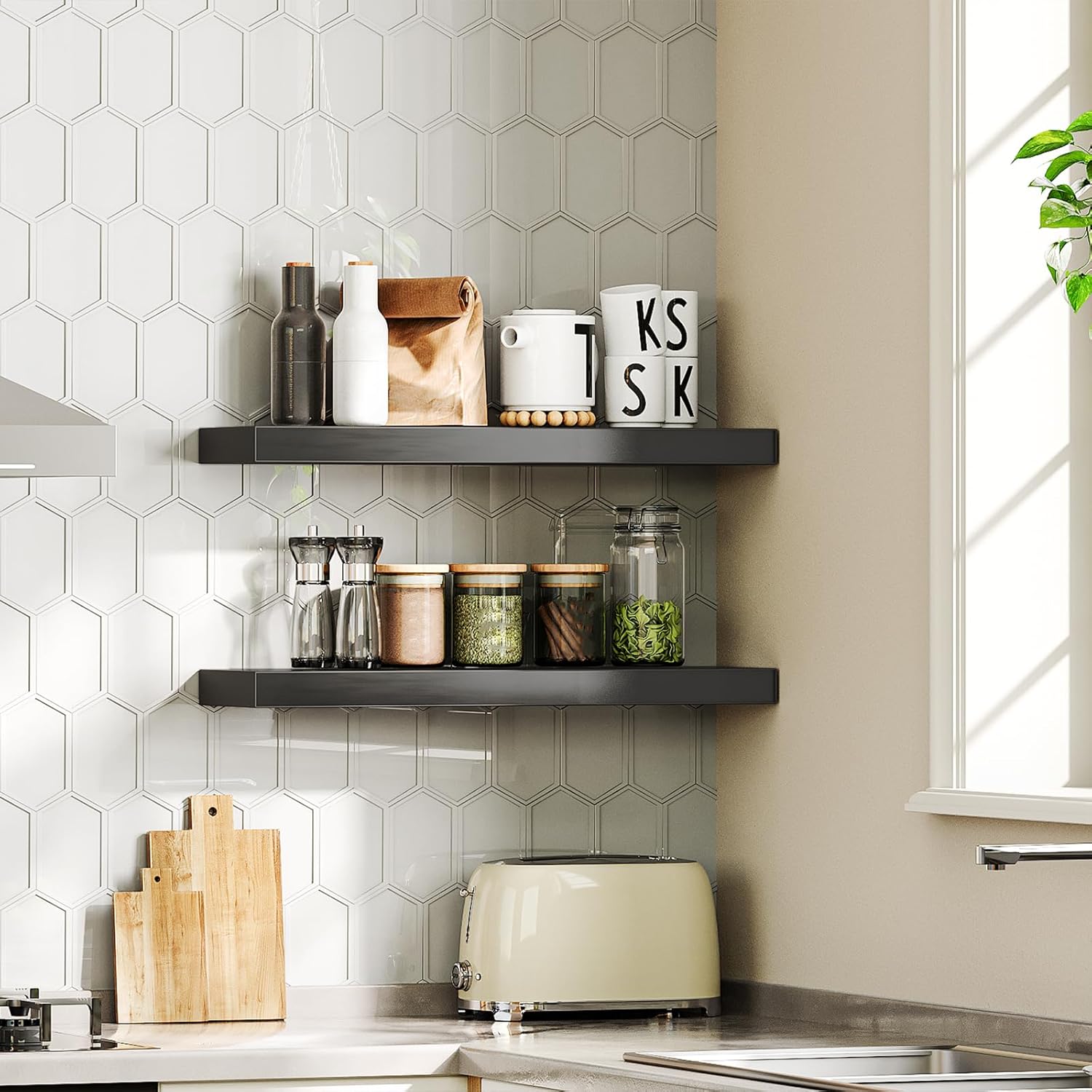 - Exquisite Wall Surface Decoration: Two classic and elegant black wooden shelves can be placed on each wall surface of all household rooms. This floating shelf for room wall is not only for its decoration effect, but also for this wall shelves high practicality. It is an ideal place to display your beloved photos, trophies and other delicate ecorations