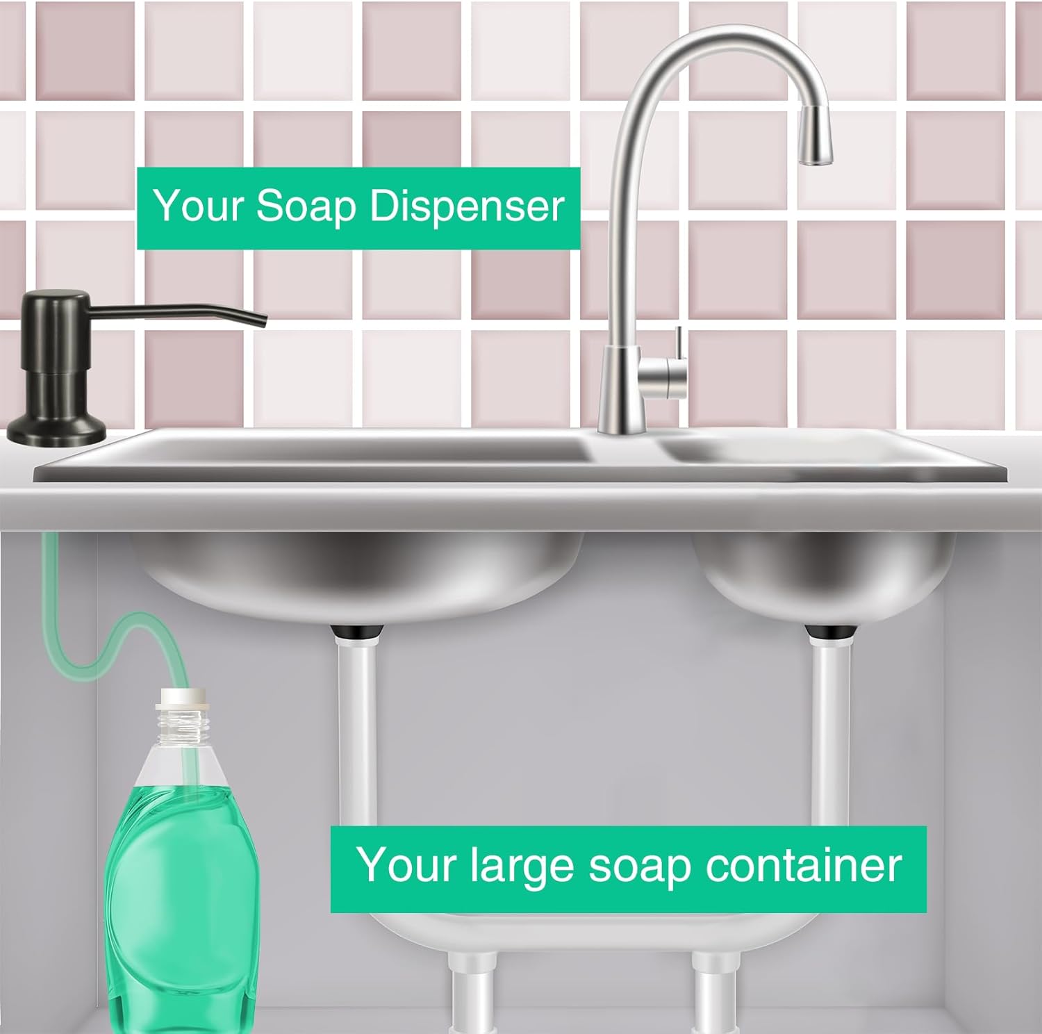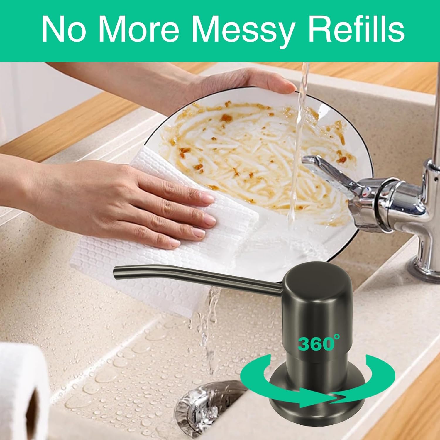 - No more messy refills - No more crawling under the sink. Our elegant sink soap dispenser comes with a 47β tube that goes directly into a large dish soap bottle, you can skip the frequent refill process.