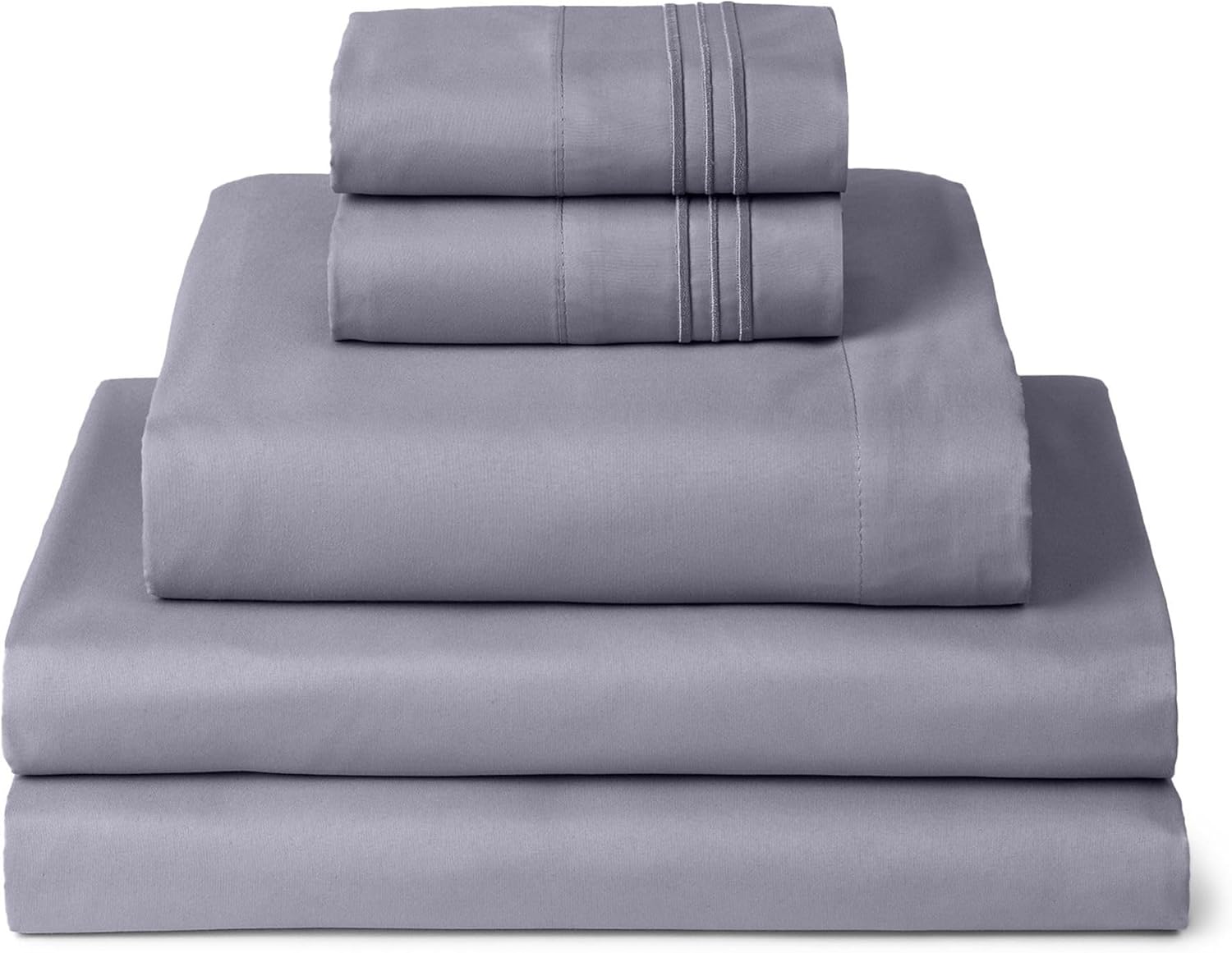 Mellanni Split King Sheets Set - 5 PC Iconic Collection Bedding - Hotel Luxury, Extra Soft, Cooling Bed Sheets - Wrinkle, Fade, Stain Resistant (Split King, Hazy Lilac)
