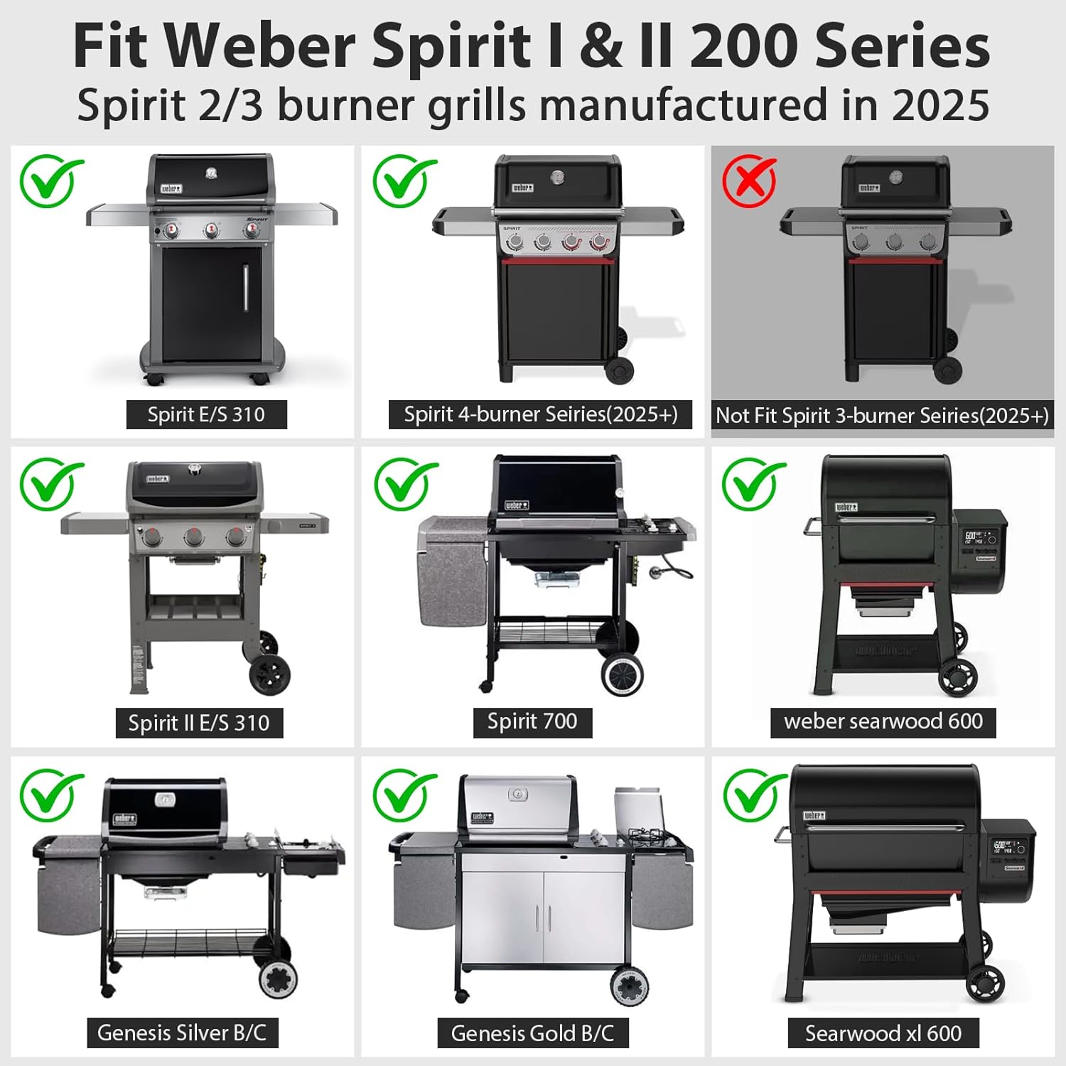 - Fits Spirit & Spirit II 3-Burner Grills – Compatible with weber Spirit and Spirit II 3-burner gas grills, including E-310, E-320, E-330, S-310, S-320, S-330, Spirit II E-310, E-320, E-330, S-310, S-320, S-330, SP-310, SP-330. Works with grills manufactured from 2016–2024.