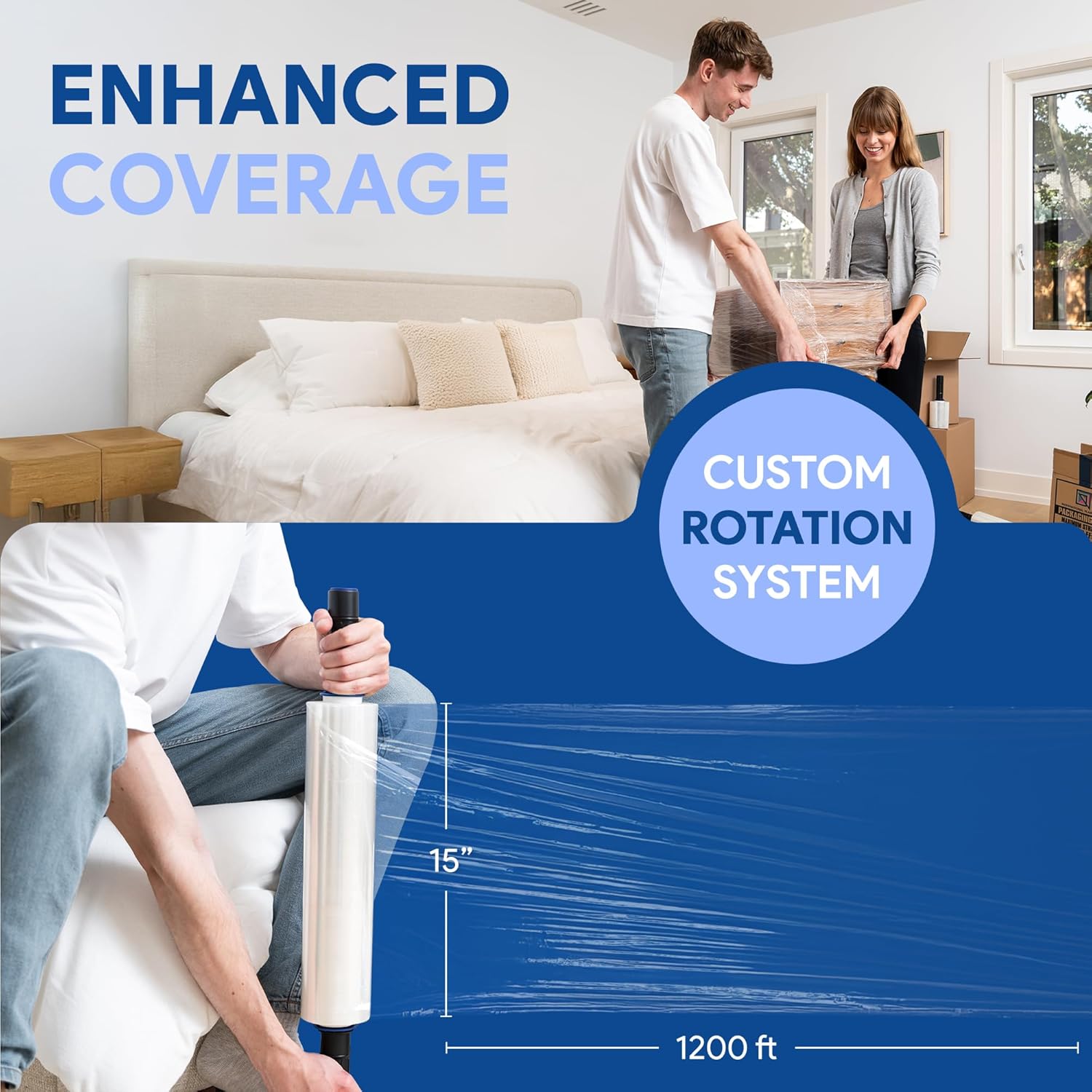 - CONQUER MOVING DAY: Wrap, bundle, and secure all your belongings with ease using this 2 Pack 15" x 1200 ft stretch film with extended tension handles. Move with confidence knowing your items are protected!