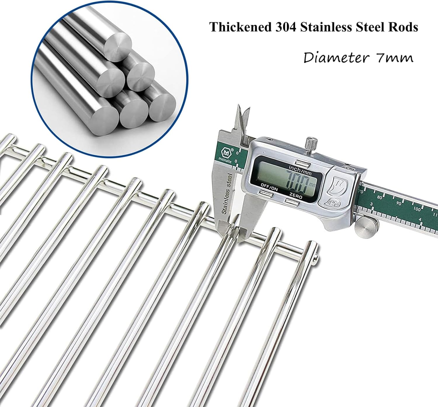 - 【Easy to Clean】Grill grate with smooth surface is free of sharp edges and the end of the rods with a round design that don't hurt your hands. Unlike the cast iron grill that requires more effort to keep clean and tidy, this stainless steel grill grate is non-stick and can be easily cleaned just with a brush.