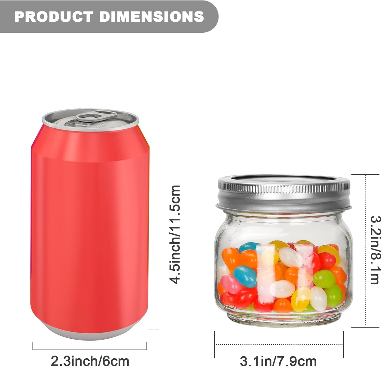 - 【Wide Range of Uses】: The small half pint canning jars an be refrigerated, frozen, drinks, fresh, suitable for storing all kinds of food. It can also be used as a vase, DIY into spices, herbs,candy,jelly,candles, and various decorations. Perfect for wedding favors, cupacke jars,candle jars even planter.